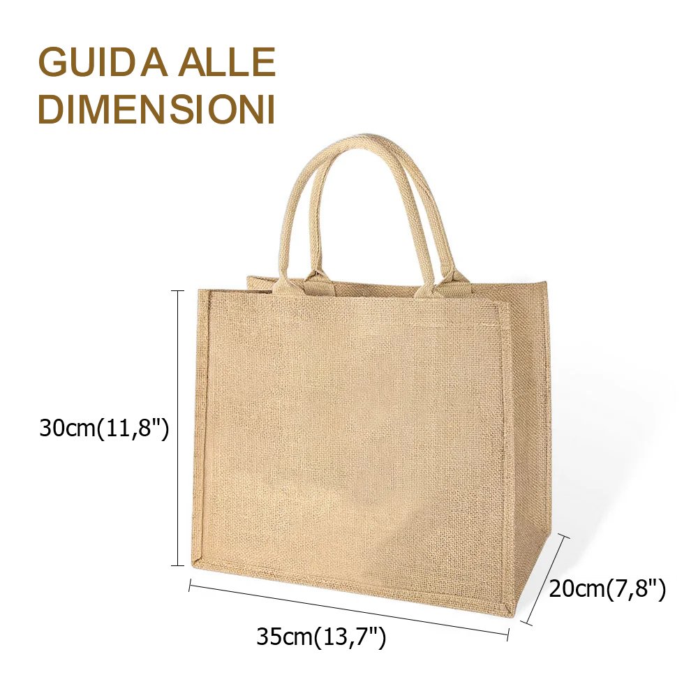 Realizzata in juta ecologica, questa borsa è elegante e rispettosa dell’ambiente. La juta è resistente, traspirante e durevole, perfetta per l’uso quotidiano. Facile da trasportare, è ideale per la spesa, i viaggi o le attività quotidiane, senza compromettere lo stile.