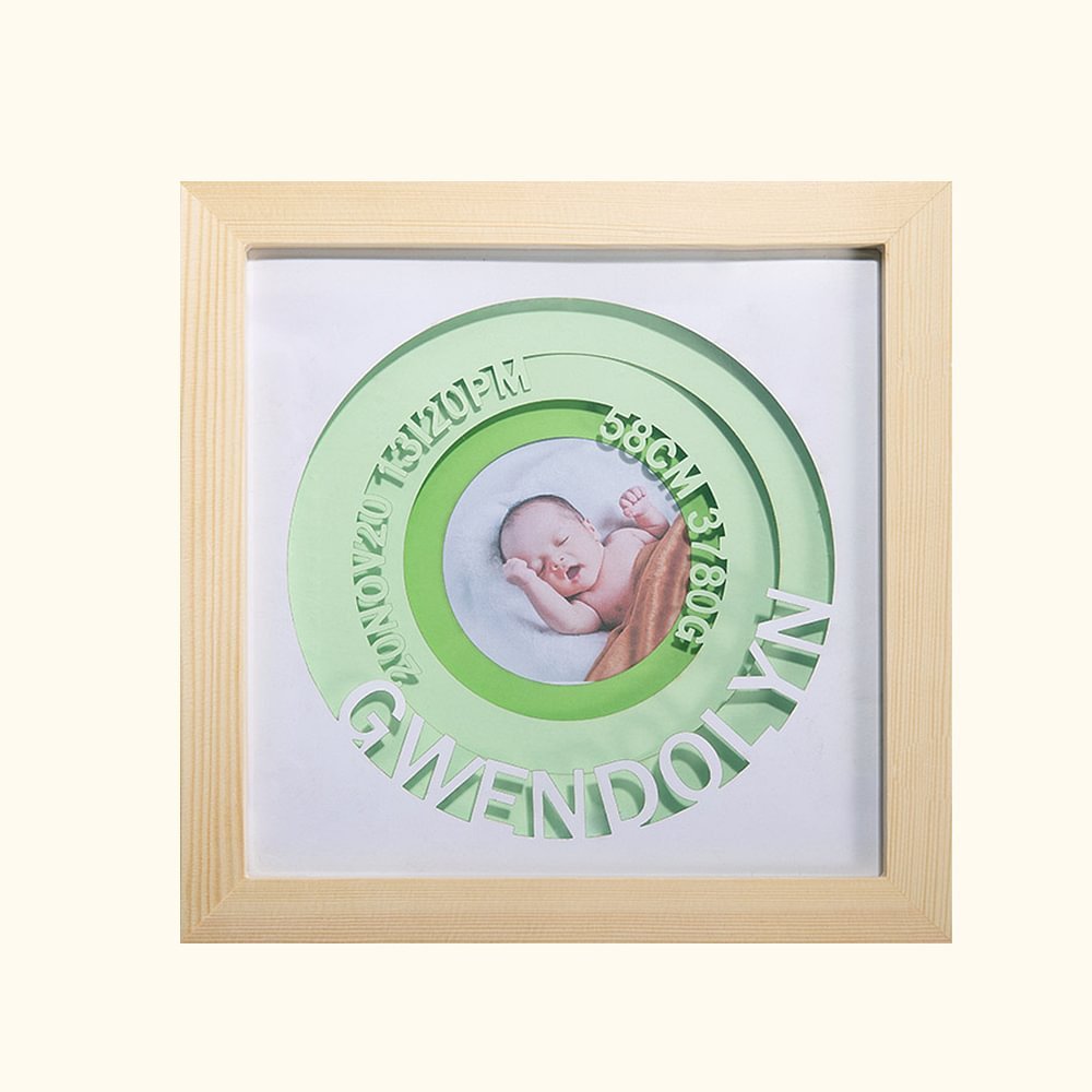 -Questa cornice per annunci di nascita mostra la foto del bambino e i suoi dati di nascita attraverso strati di carta 3D. La cornice è in grado di creare una sensazione di freschezza e bellezza per l'arredamento della parete. Ricorda il grande momento del tuo piccolo e ti ricorda i dolci ricordi della tua vita.