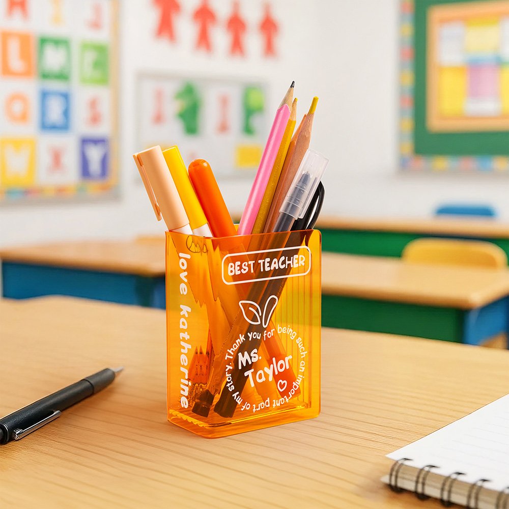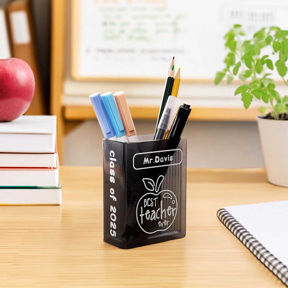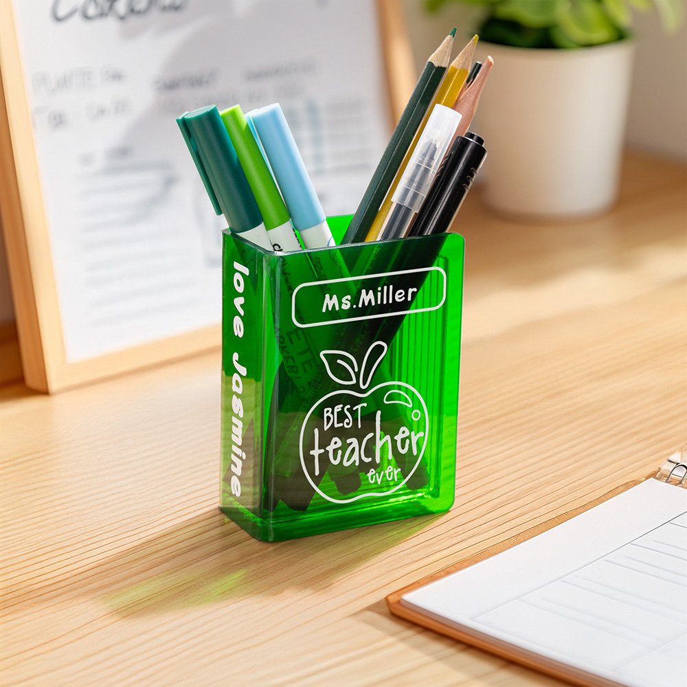 - Decorazione elegante: Il portapenne in acrilico adotta uno stile a forma di libro, abbinando il motivo della mela e incidendo il nome sulla parte anteriore, che può essere un regalo perfetto per l'insegnante. Disponibile nei colori blu, verde, arancione e grigio, questo portamatite da scrivania è la scelta migliore tra gli accessori da scrivania.