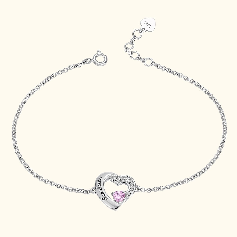 -Con una pietra di nascita tagliata a cuore che si aggrappa a un cuore più grande, questo braccialetto rappresenta appieno la dolcezza delle donne.