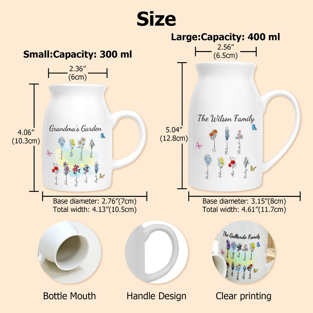Fiori di nascita personalizzati 1-10 Vaso in ceramica con manico Titolo e nomi Compleanno Regalo per la festa della mamma e della nonna Famiglia