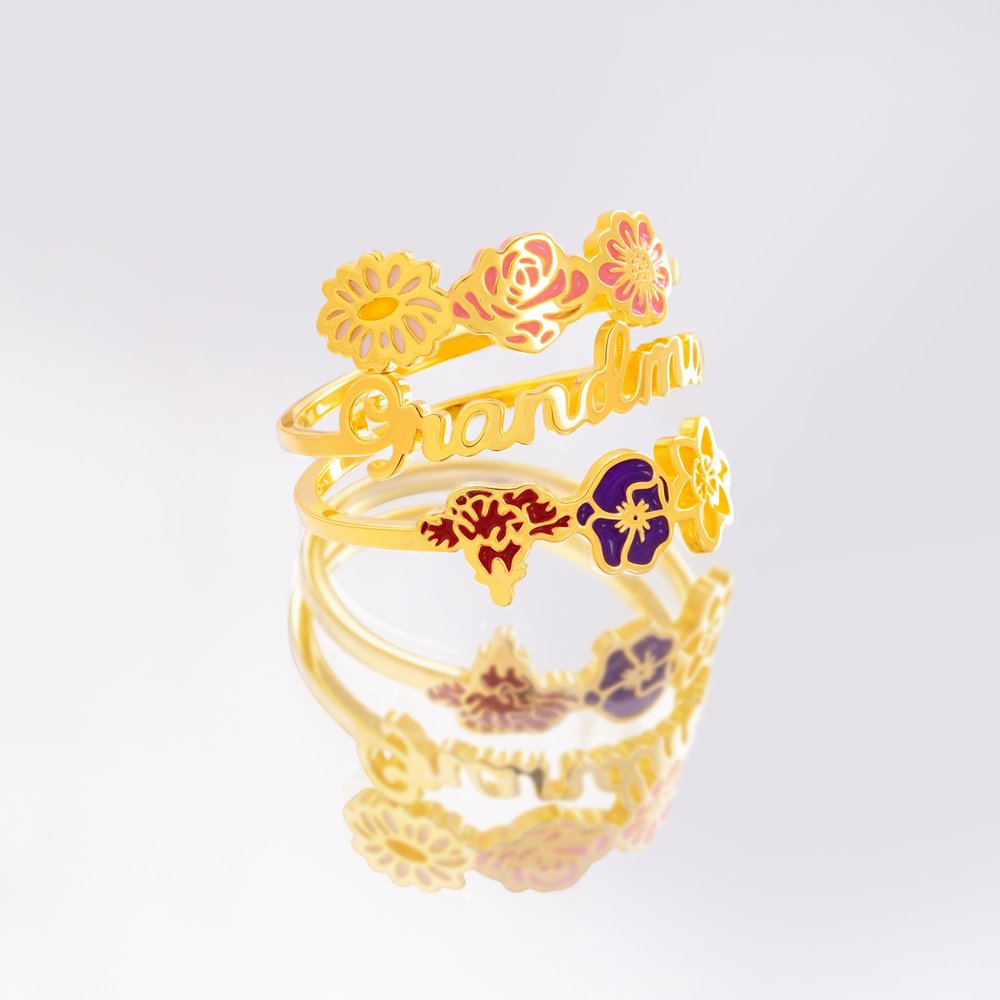 I nostri anelli sono aperti, flessibili e adatti a dita di diverse dimensioni. La cosa più affascinante è che potete personalizzare da 1 a 6 fiori di compleanno che rappresentano voi stessi e la vostra famiglia. Ogni fiore è accuratamente progettato e abbinato, colorato e realistico. Allo stesso tempo, è possibile scegliere di personalizzare un nome, rendendo questo anello un accessorio unico ed esclusivo.