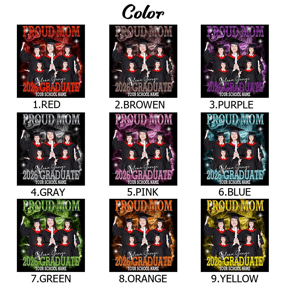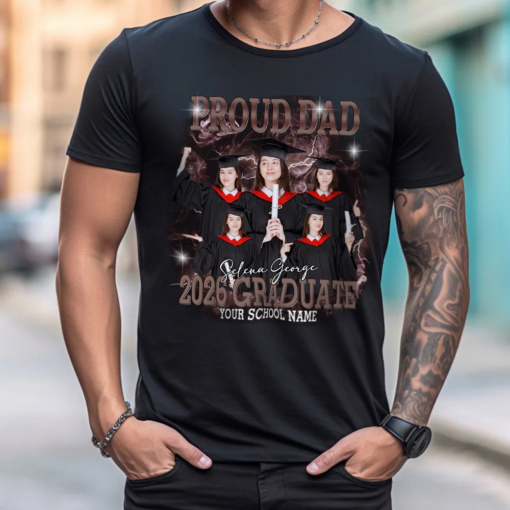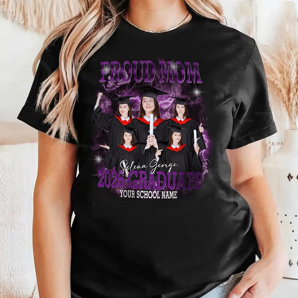 Il nostro design si ispira all'annuale stagione dei diplomi, un momento importante della nostra vita e un momento ancora più bello da testimoniare e conservare. La maglietta presenta uno stile hip-hop retrò con un'illustrazione della testa del diplomato su uno sfondo di fumo e fulmini sul davanti, e potete caricare fino a cinque foto e aggiungere il vostro nome e quello della vostra scuola per celebrare il vostro orgoglioso e riuscito diploma.