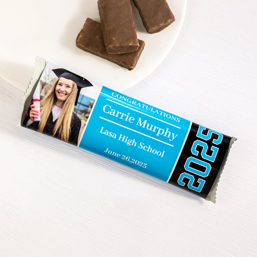 La carta per caramelle è disponibile in 25 colori vivaci e il design è completamente personalizzabile. Aggiungete la foto, il nome e l'anno di laurea del diplomato per creare un ricordo unico e significativo. È stato progettato per catturare perfettamente l'orgoglio e la gioia di questo traguardo.