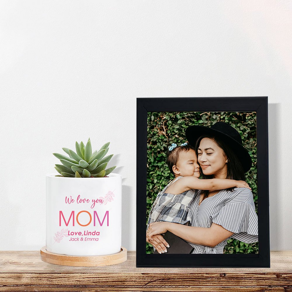 Sul design di questo vaso da fiori sono presenti 4 foto, che potete caricare in base alle vostre preferenze. È inoltre possibile personalizzare un messaggio e un nome per dimostrare alla mamma, alla nonna o ad altri membri della famiglia che è sempre nel vostro cuore e ricordarle il vostro amore ogni giorno.