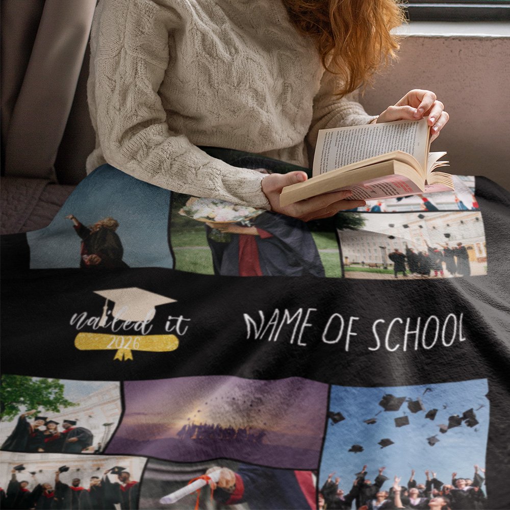 Questa morbida coperta di flanella è stata progettata appositamente per i regali di laurea degli studenti, è un regalo di laurea perfetto per ragazzi e ragazze laureati. È possibile personalizzare 9 foto per fare un regalo davvero unico e significativo per la persona amata.