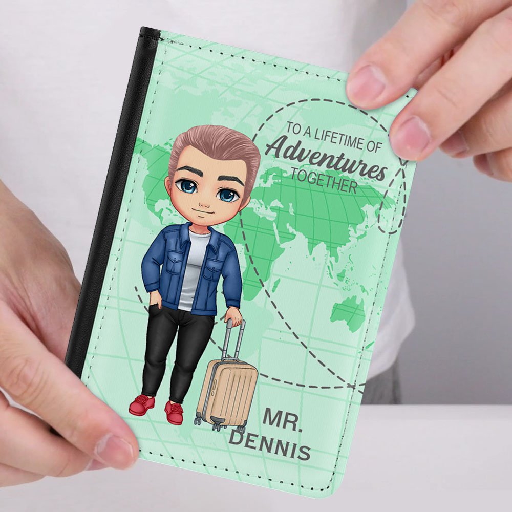 Personalizzato A Lifetime Of Adventures Cartoon Character Passport Cover Regalo di compleanno per la coppia di innamorati