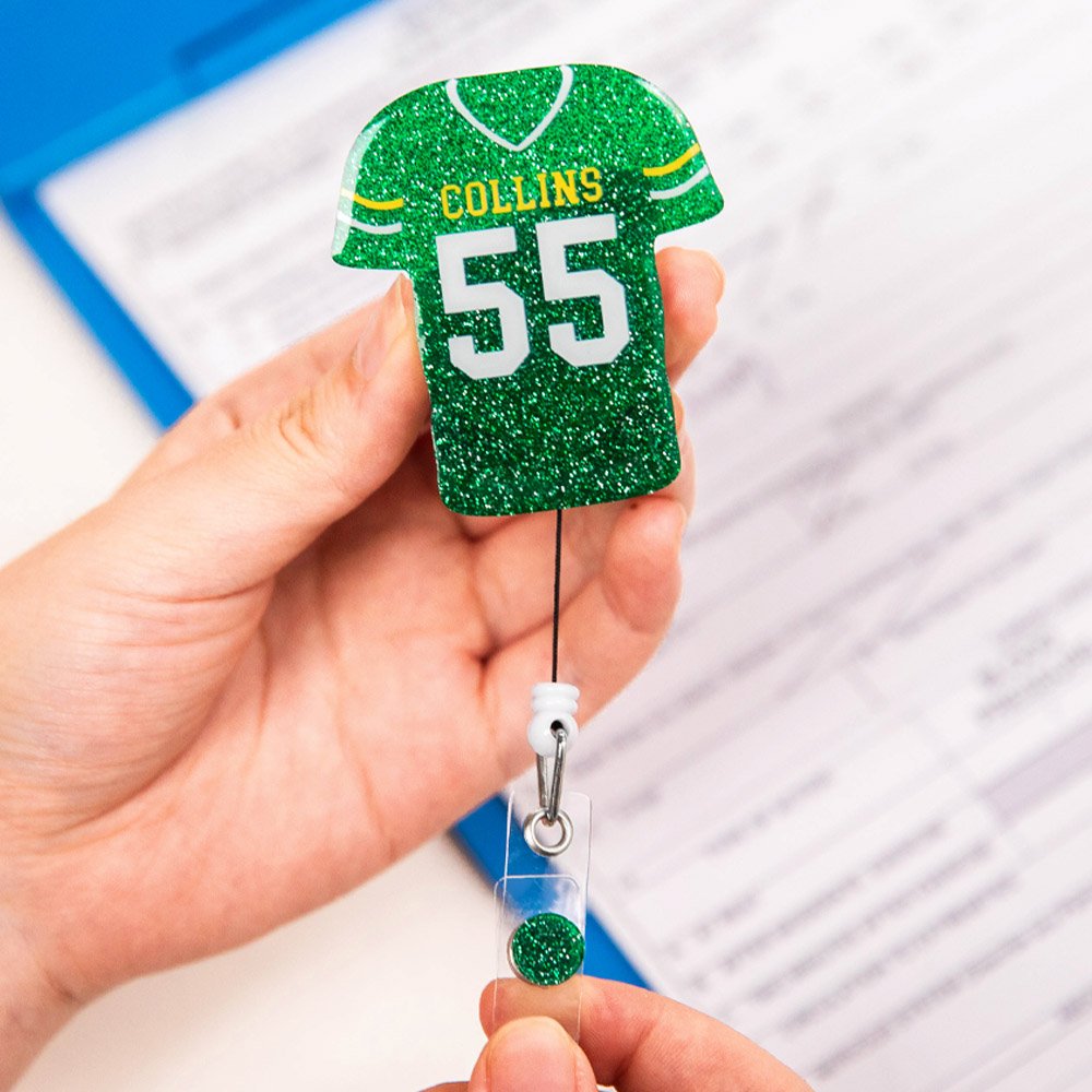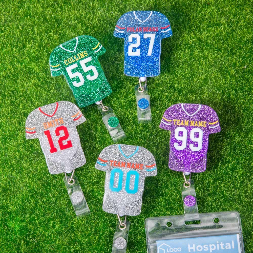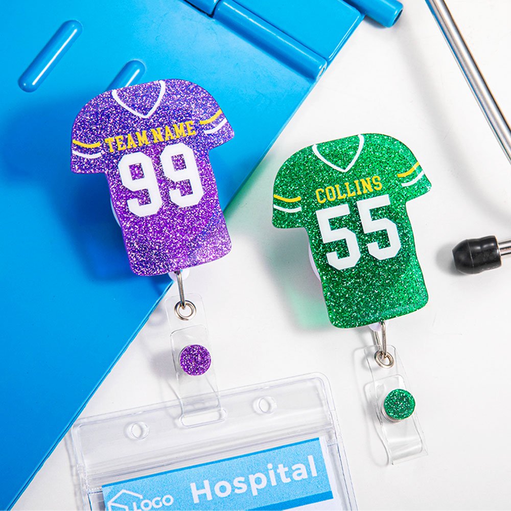 Presenta un design unico di maglia da calcio con nome e numero personalizzati in acrilico scintillante. La combinazione creativa di tema sportivo e funzionalità professionale aggiunge personalità all'abbigliamento medico da lavoro.