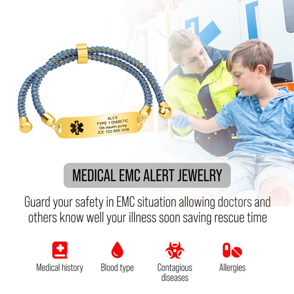 Con i nostri braccialetti identificativi medici, potete assicurarvi che le informazioni mediche di vostro figlio siano sempre facilmente accessibili. È sufficiente aggiungere al braccialetto le informazioni mediche del bambino, come ad esempio allergie, diabete di tipo 1, diabete di tipo 2, epilessia e Alzheimer. E non dovrete più preoccuparvi di trovare l'aiuto di cui vostro figlio ha bisogno in caso di emergenza.