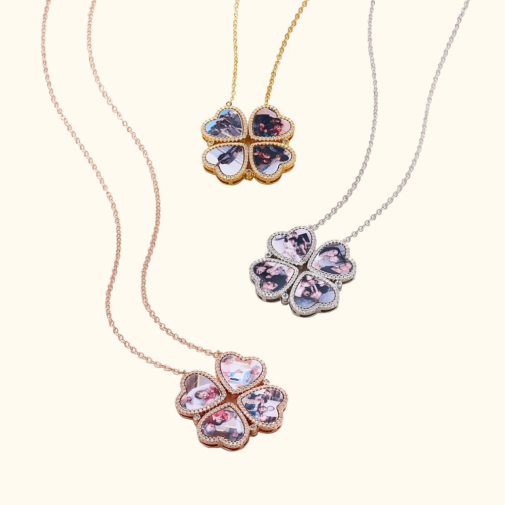 La nostra collana fotografica è disegnata con un quadrifoglio a forma di cuore, simbolo di fortuna e amore. È possibile personalizzare le foto nel ciondolo a forma di cuore per catturare ogni vostro momento indimenticabile, rendendo i ricordi vividi e intimi. Inoltre, la particolarità della collana è che i 4 ciondoli a forma di cuore possono essere regolati liberamente nella forma. È possibile disporli direttamente in linea retta o avvolgerli a forma di quadrifoglio. I cuori su entrambi i lati sono dotati di piccole aspirazioni magnetiche che possono essere risucchiate automaticamente, il che è squisito.