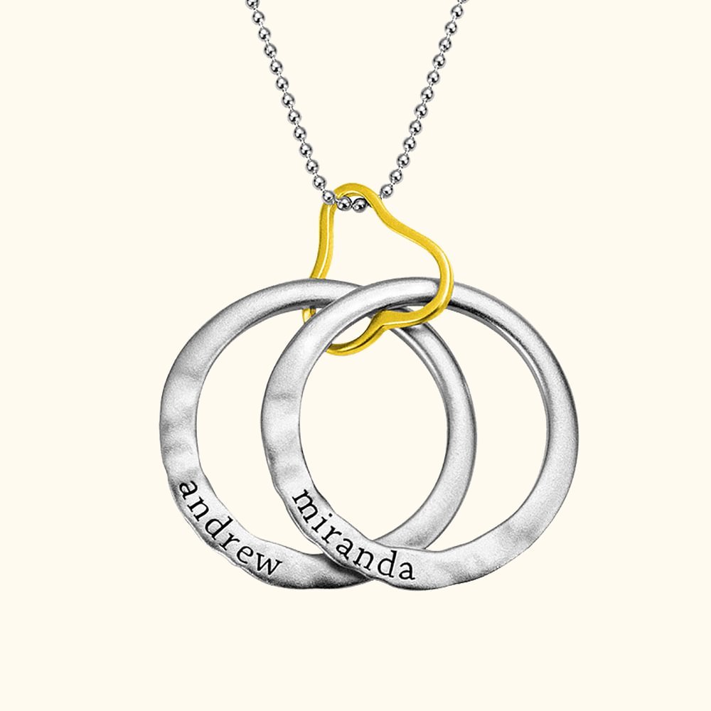 - Il designer di Callie ha infranto la regola tradizionale del concetto di design dell'anello e ha progettato un anello irregolare, composto da due anelli, più un cuore d'amore che collega i due anelli, incastrandosi con il cuore. Il colore dell'anello è l'argento, mentre il colore del cuore d'amore può essere scelto tra oro e oro rosa per soddisfare le vostre esigenze. L'anello può essere inciso con il nome che si desidera; la catena di perline lega i tre anelli per formare una collana unica e raffinata.