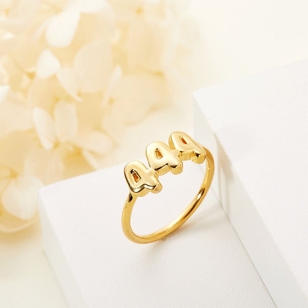 Questo anello presenta un design unico con una lettera a bolla che incorpora un numero d'angelo positivo per portarvi fortuna. Che si scelga un numero d'angelo significativo o una lettera fortunata personalizzata, questo anello è un modo delizioso per portare con sé la positività ovunque si vada.