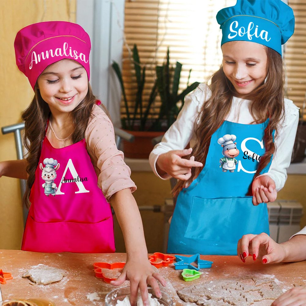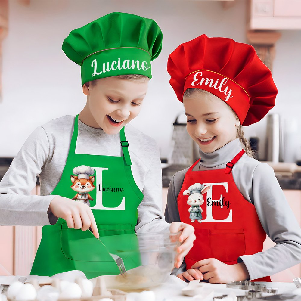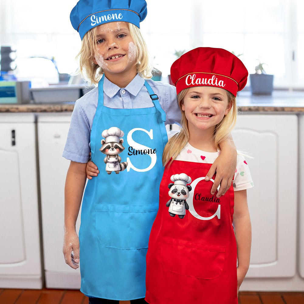 Rendi speciale il grembiule del tuo bambino con le sue iniziali e il nome completo, scegliendo tra 36 adorabili animali in stile cartone animato con cappello da chef. Questo piccolo dettaglio renderà ogni esperienza in cucina ancora più divertente e unica.