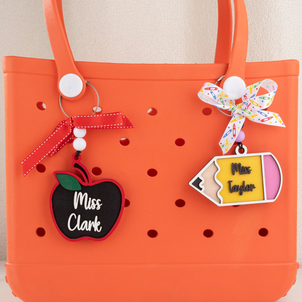 Centrato sulla matita, che simboleggia l'apprendimento e l'istruzione, e sulla mela, che rappresenta la conoscenza e la saggezza, questo design incarna la semplicità e allo stesso tempo trasmette un significato educativo, allineandosi perfettamente con l'essenza della professione di insegnante. Supporta la personalizzazione del testo, trasformando l'accessorio portachiavi in un emblema distintivo. Ogni utilizzo è un'espressione tangibile di rispetto per la vocazione all'insegnamento.