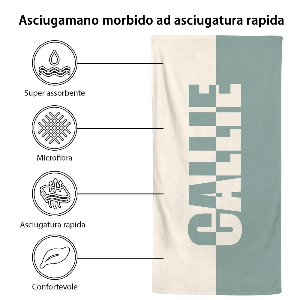 Se amate le vacanze in spiaggia, le feste in piscina o le attività all'aperto, questo telo da mare può soddisfare le vostre esigenze. Le sue dimensioni ampie offrono molto spazio per sdraiarsi, prendere il sole o asciugarsi dopo il bagno. Il design personalizzato e su misura lo rende un ottimo supporto per scattare foto e lasciare bei ricordi.