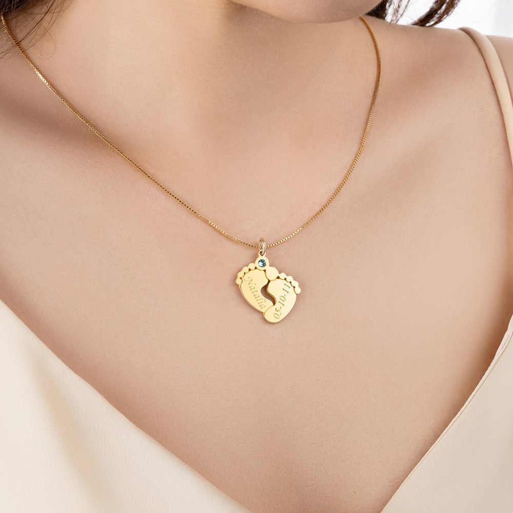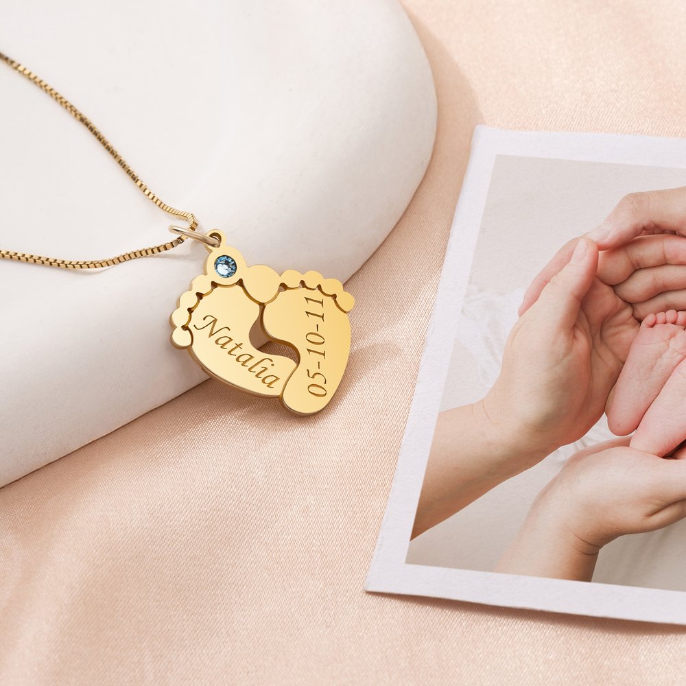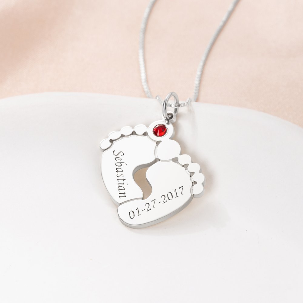 Collana personalizzata con ciondolo a forma di piede di bambino e pietra di nascita con testo inciso Annuncio di nascita Compleanno Regalo per la festa del bebè per la nuova mamma