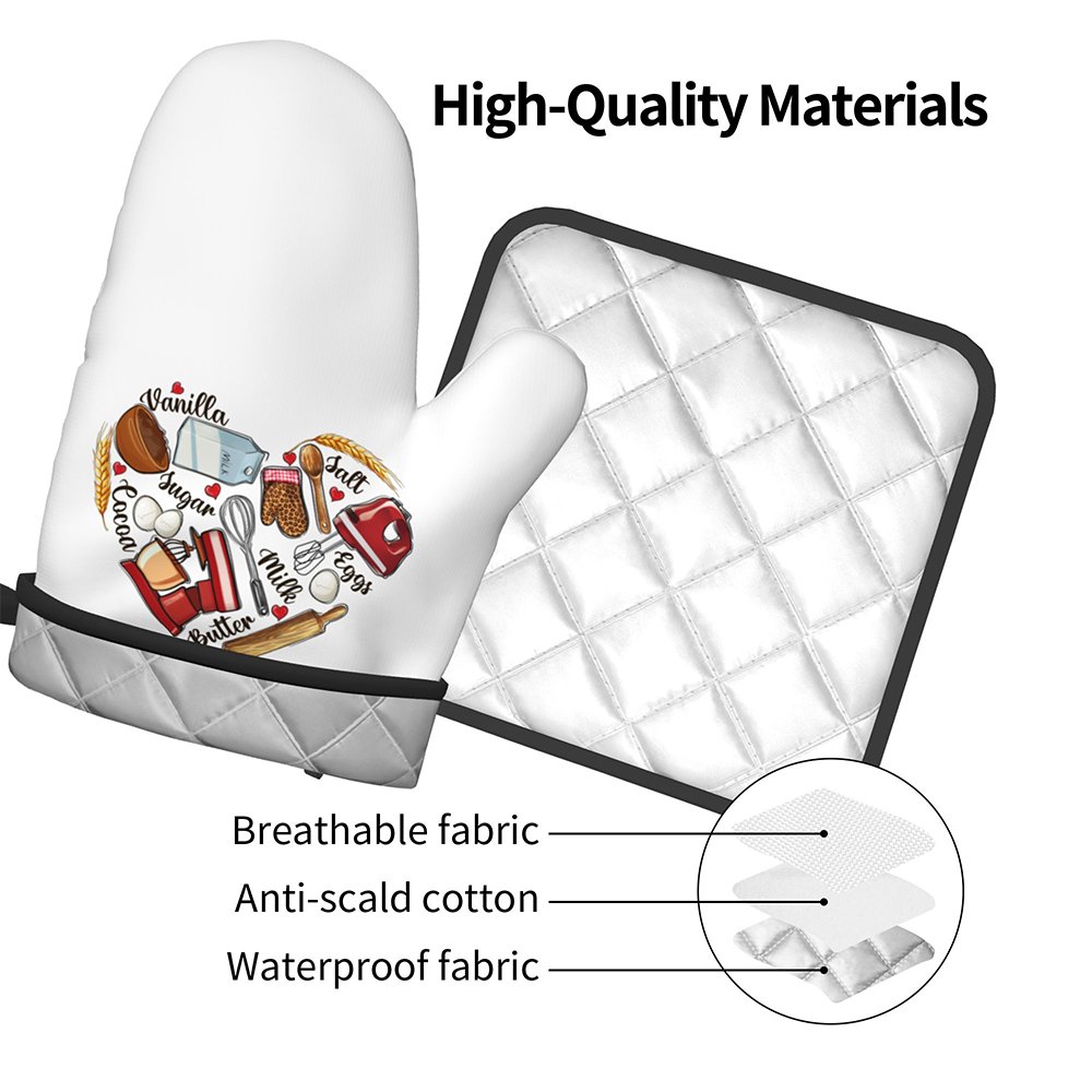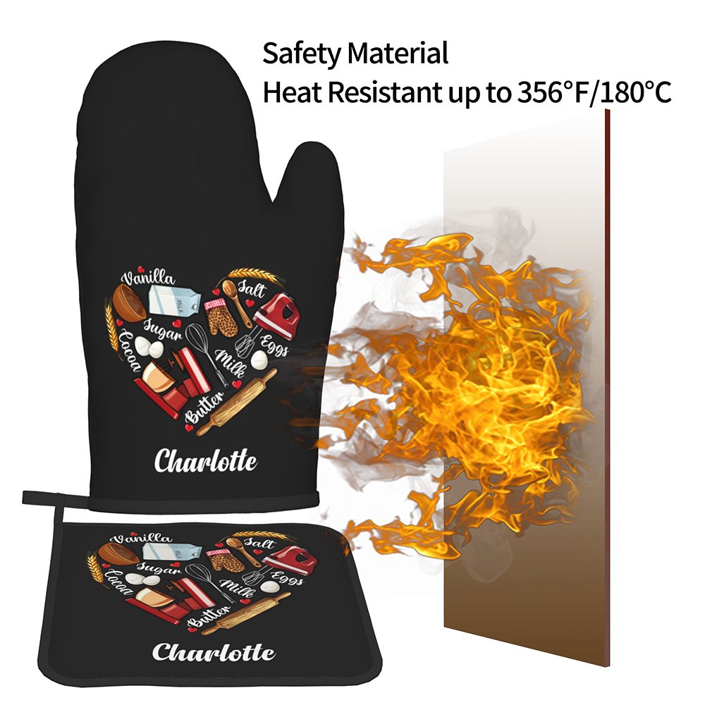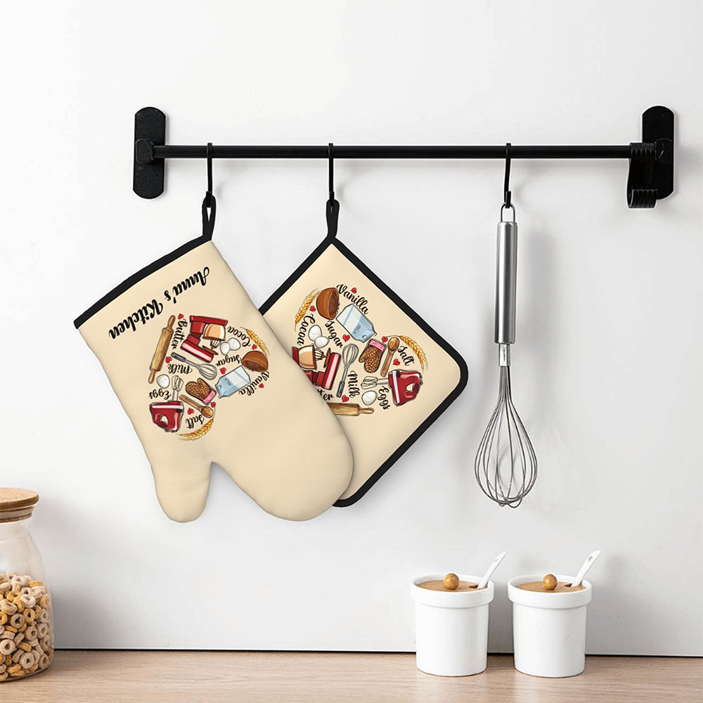 L'elemento di personalizzazione è il cuore di questo set, con il nome del destinatario o qualsiasi messaggio speciale visualizzato sia sui guanti da forno che sulla presina. Questo tocco personalizzato trasforma questi pratici accessori da cucina in un regalo prezioso e significativo, rendendo questo set un vero e proprio riflesso della passione per la pasticceria di chi lo riceve.