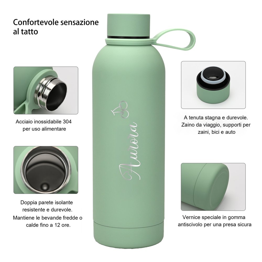 Questa borraccia presenta 38 icone vivaci e può essere incisa con un nome unico, rendendo ogni esperienza di consumo davvero personale. L'intaglio giocoso fonde perfettamente l'estetica gioiosa con l'eleganza funzionale, trasformando l'uso quotidiano in un'espressione unica di personalità e cura.