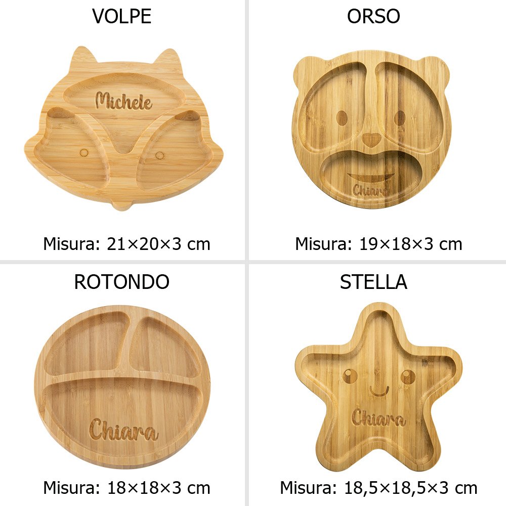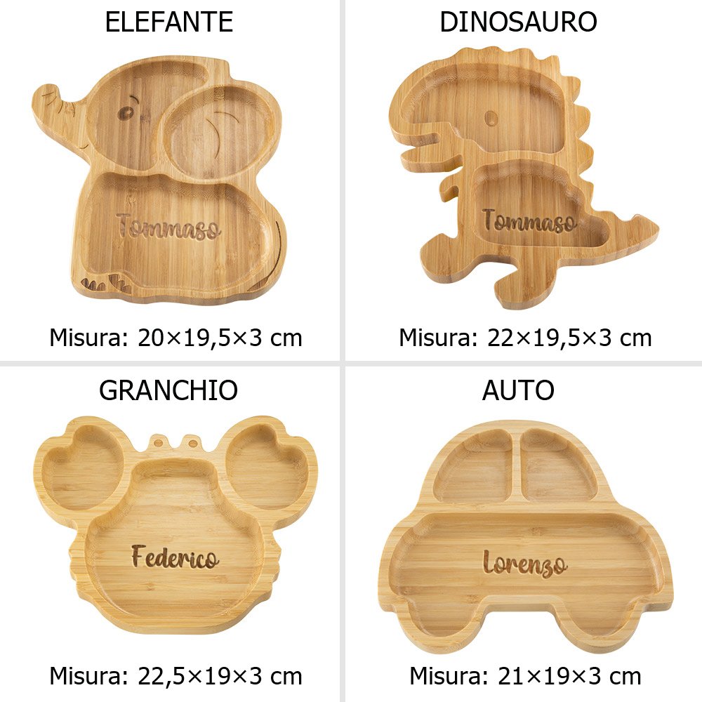 Il set di posate in bambù personalizzati per bambini è colorato e simpatico, con forme di animali che piaceranno ai più piccoli. È anche pratico per facilitare l'alimentazione del bambino, rendendo ogni pasto più facile e divertente.