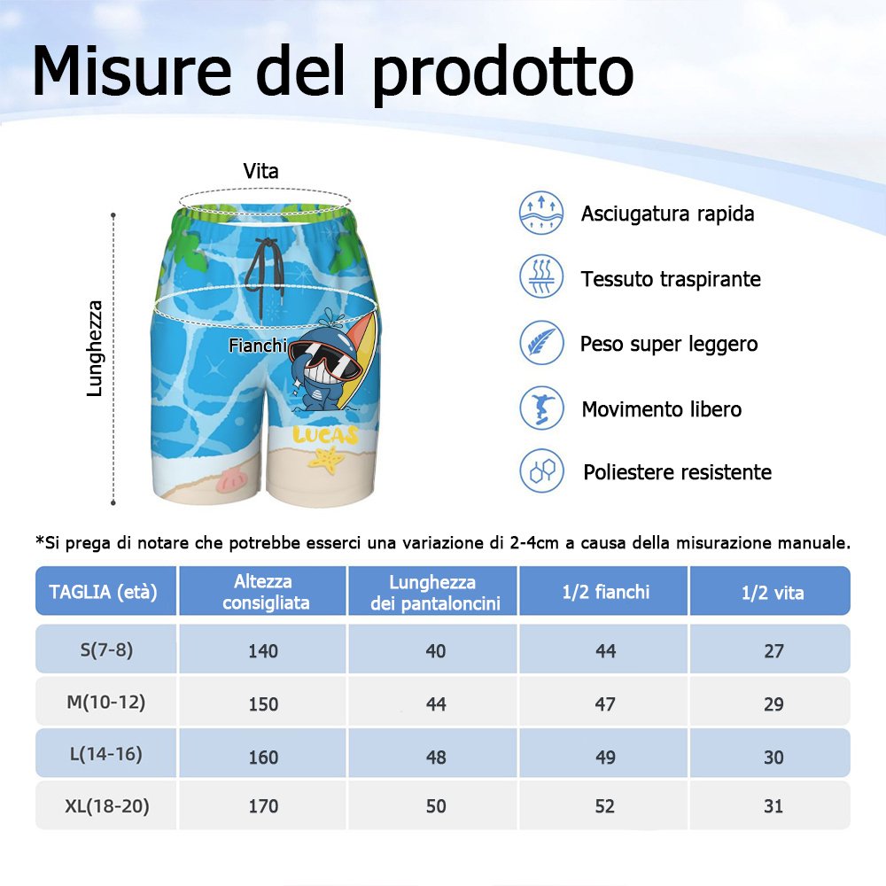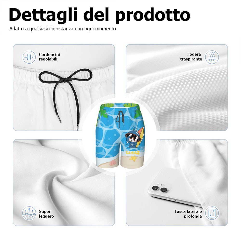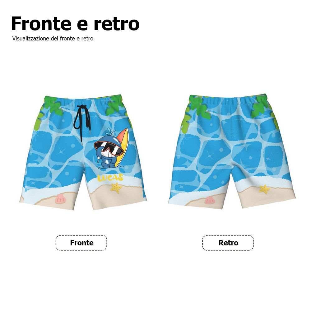 Perfetti come regalo per un viaggio estivo o come sorpresa di compleanno, questi pantaloncini da spiaggia personalizzati sono una scelta originale e divertente per i ragazzi adolescenti. Con il nome del tuo ragazzo e i colorati disegni di animali marini, ogni giorno in acqua diventerà ancora più speciale!