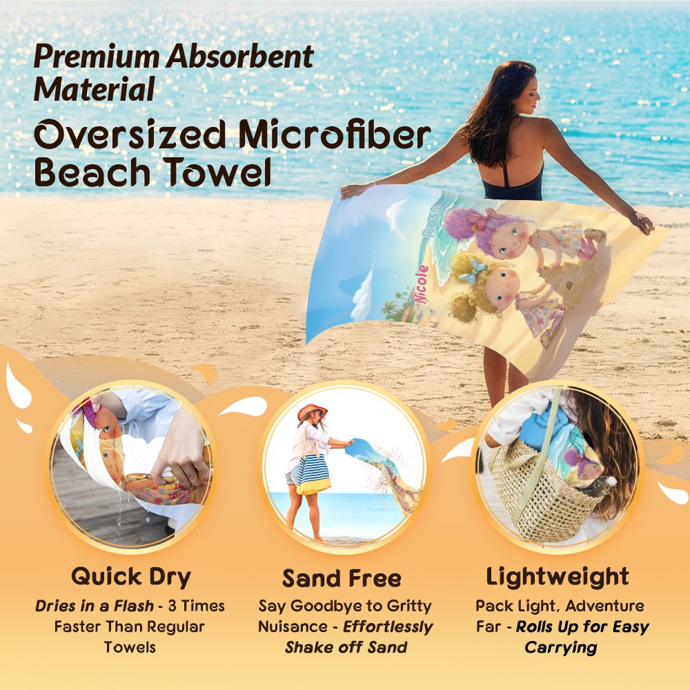 Personalizzato Beach Scenery Cartoon Girls Quick Dry Oversized Beach Towel con nome Travel Essentials Birthday Gift for Besties Sisters Friends