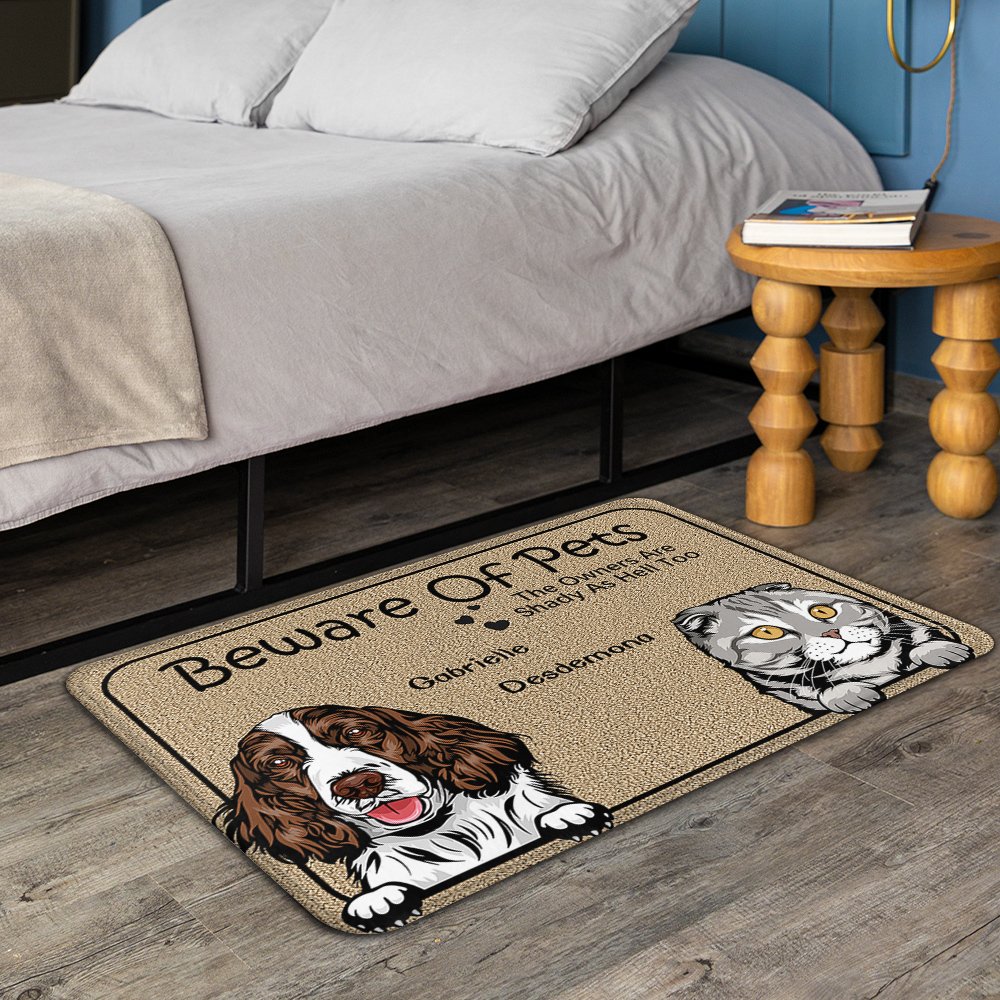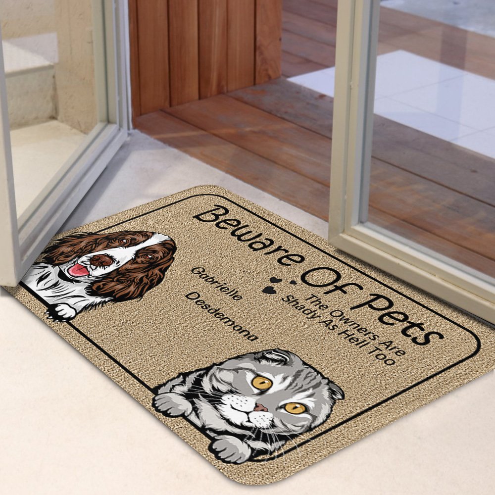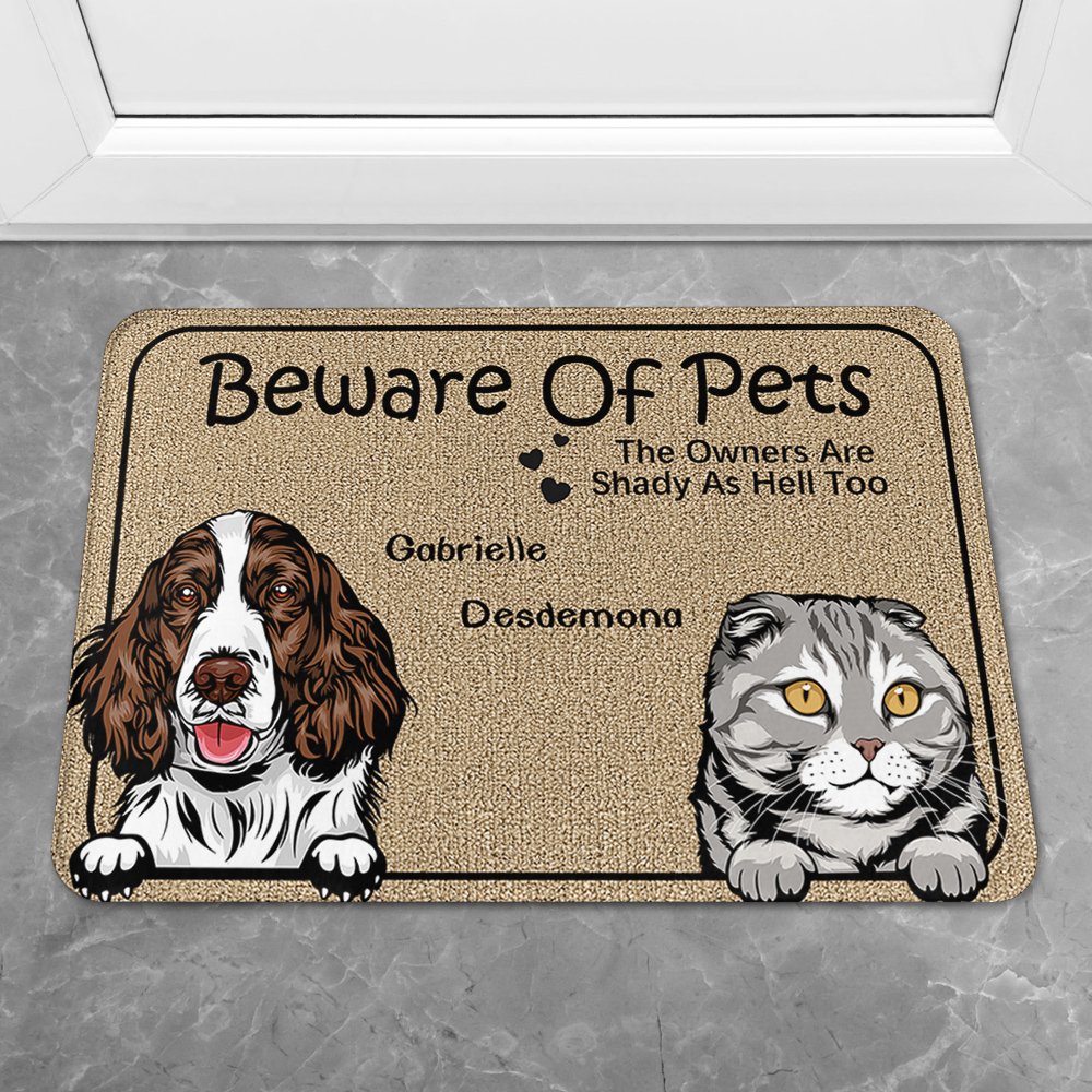 La frase "Beware Of Pets The Owners Are Shady As Hell" mostra l'umorismo e il divertimento degli animali domestici e dei loro proprietari. Stampate questa frase unica sul tappetino con il nome esclusivo del vostro animale domestico, per custodire per sempre la simpatia del vostro animale e l'amore del proprietario per il vostro animale.