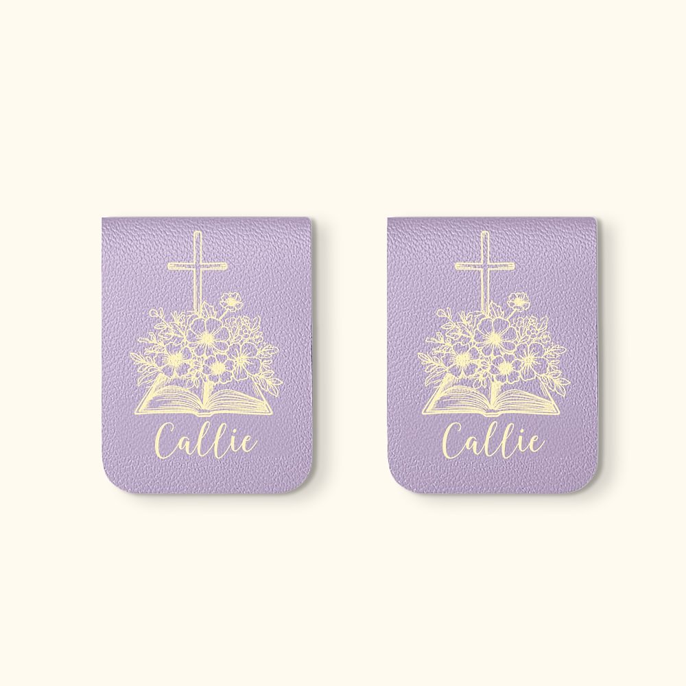 Bibbia personalizzata libro fiore croce magnetica cuoio segnalibro clip con nome compleanno regalo di Natale per bibliotecario cristiano amante dei li