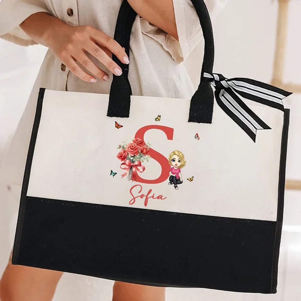 La nostra borsa unisce il fascino dei personaggi dei cartoni animati, l’espressione della personalità attraverso le iniziali e il significato romantico dei fiori di nascita, creando così un accessorio elegante e personalizzato. Inoltre, è decorata con un nastro raffinato per un tocco in più e può essere personalizzata con il nome, rendendola un pezzo unico.
