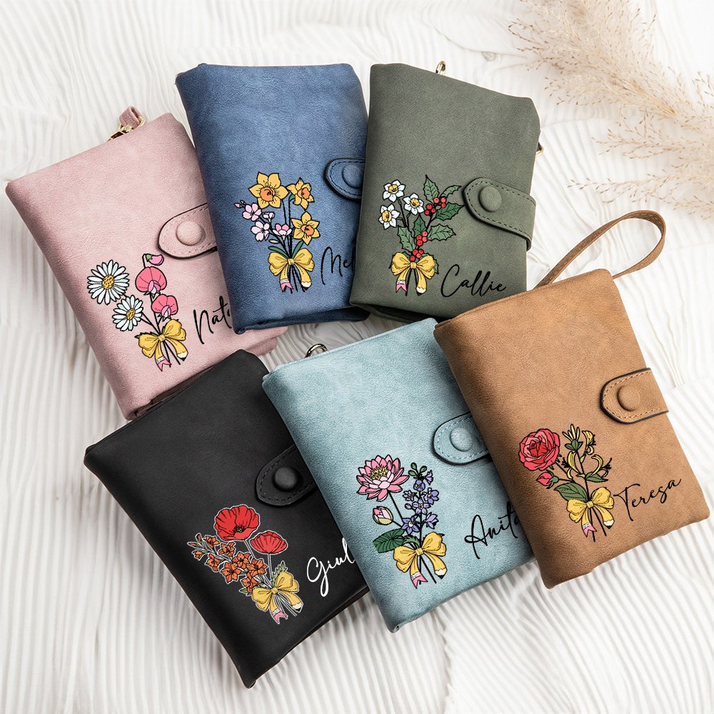 Questo portafoglio ha un design innovativo e unico, che combina in modo intelligente due elementi: il fiore di nascita e il fiocco a matita, unendo eleganza e professionalità. Puoi aggiungere il nome sul portafoglio per esprimere la tua personalità e rendilo unico.