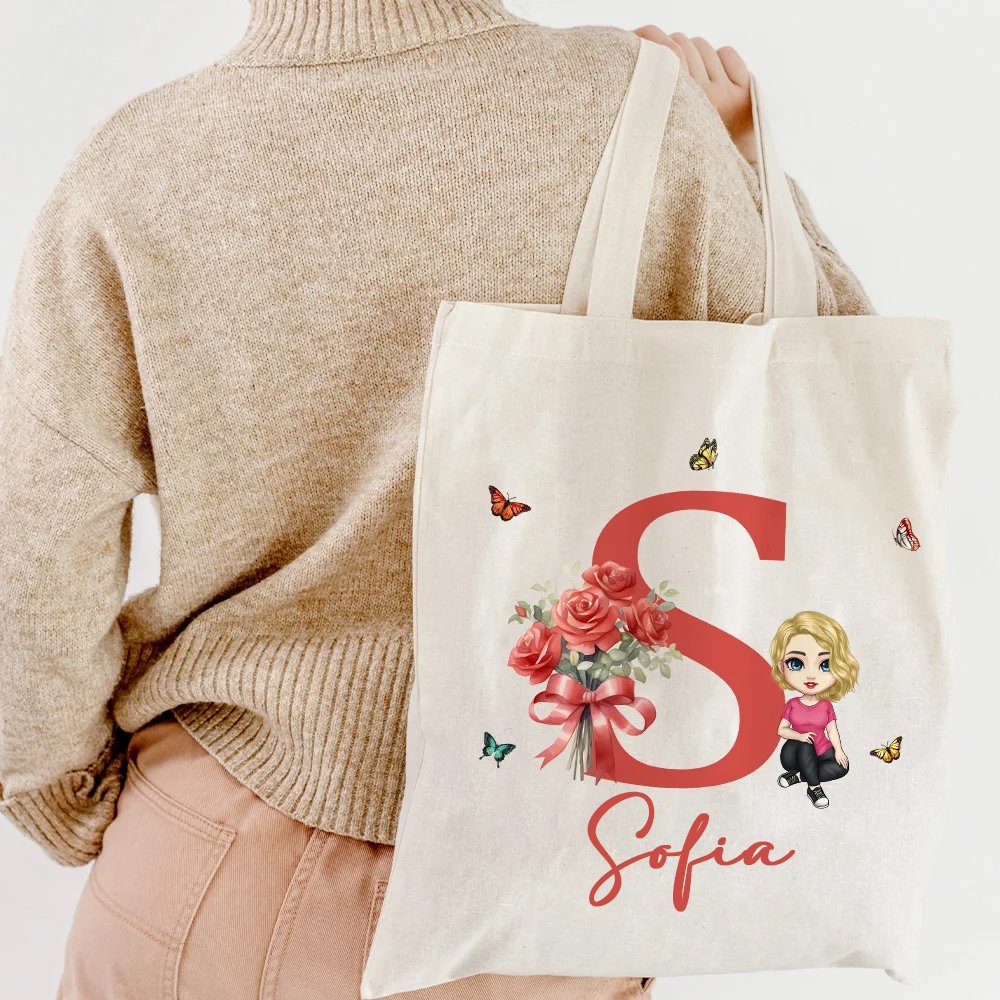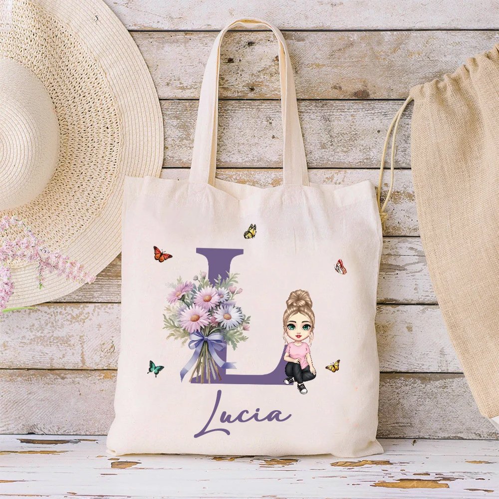 La borsa unisce armoniosamente elementi come fiori del mese di nascita, iniziali e personaggi in stile cartone animato. Questi personaggi, vivaci e simpatici, dai colori brillanti, catturano subito l’attenzione e riflettono la tua personalità e il tuo stile. Puoi anche personalizzare la borsa con un nome, rendendola ancora più speciale e unica.