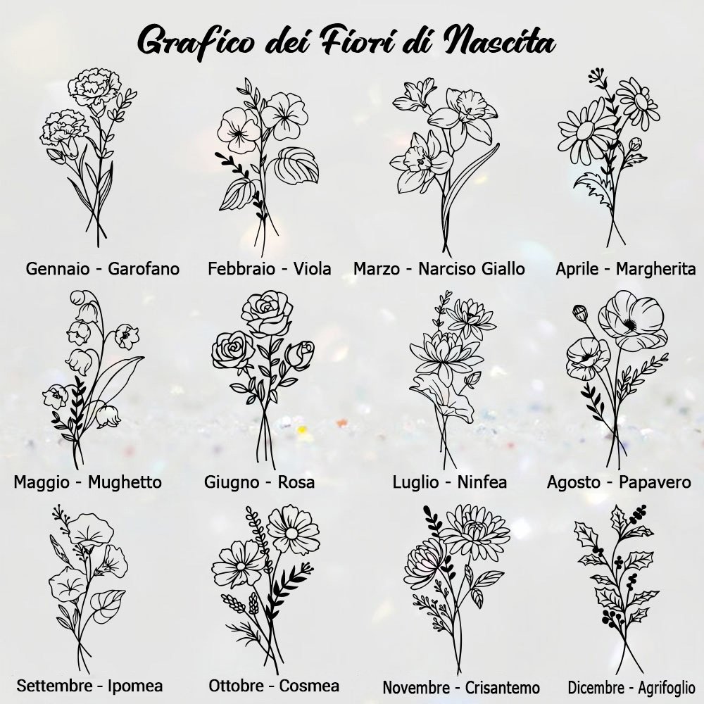 Il medaglione presenta un motivo floreale che rappresenta il mese di nascita della persona amata. Il nome inciso aggiunge un tocco personale, rendendolo un regalo unico che celebra la sua individualità.