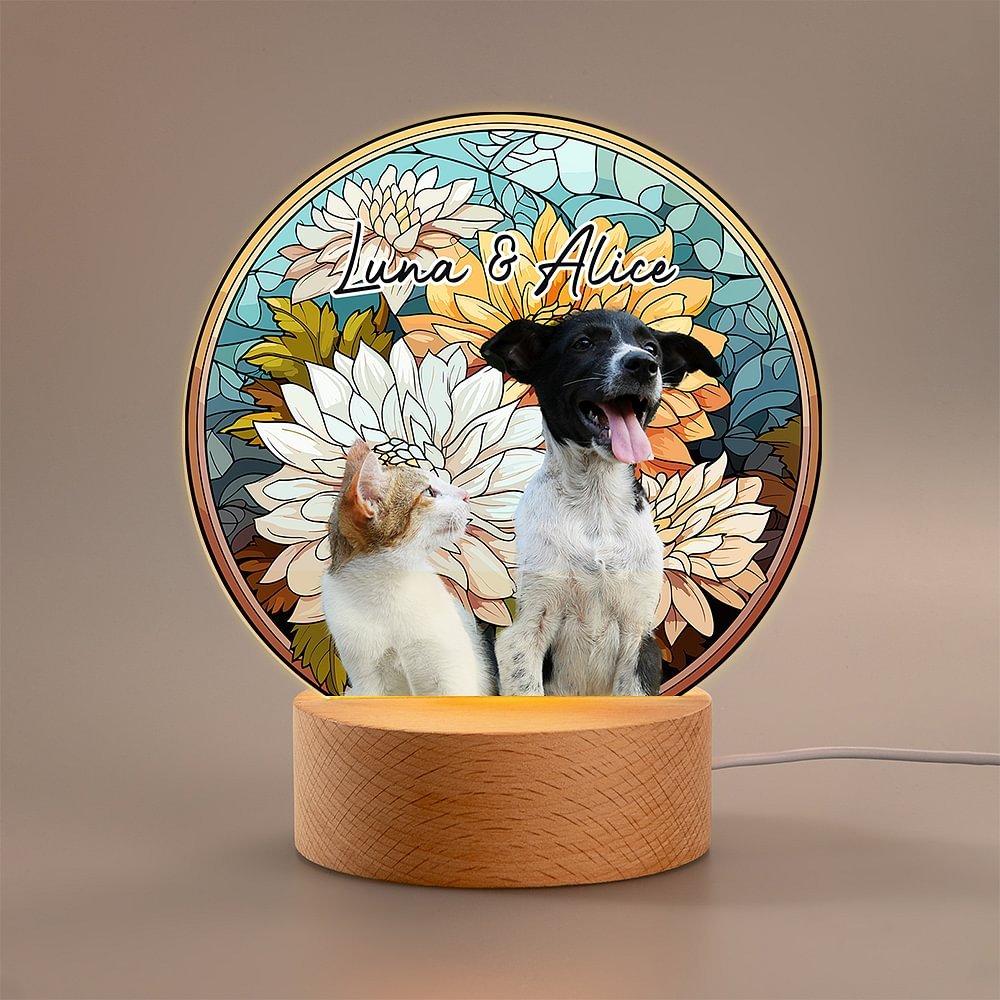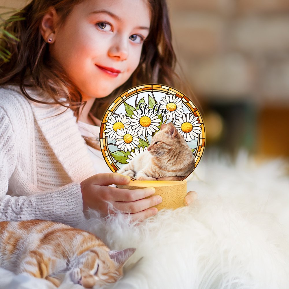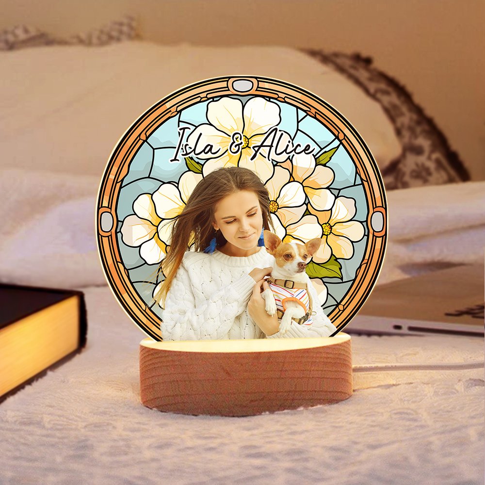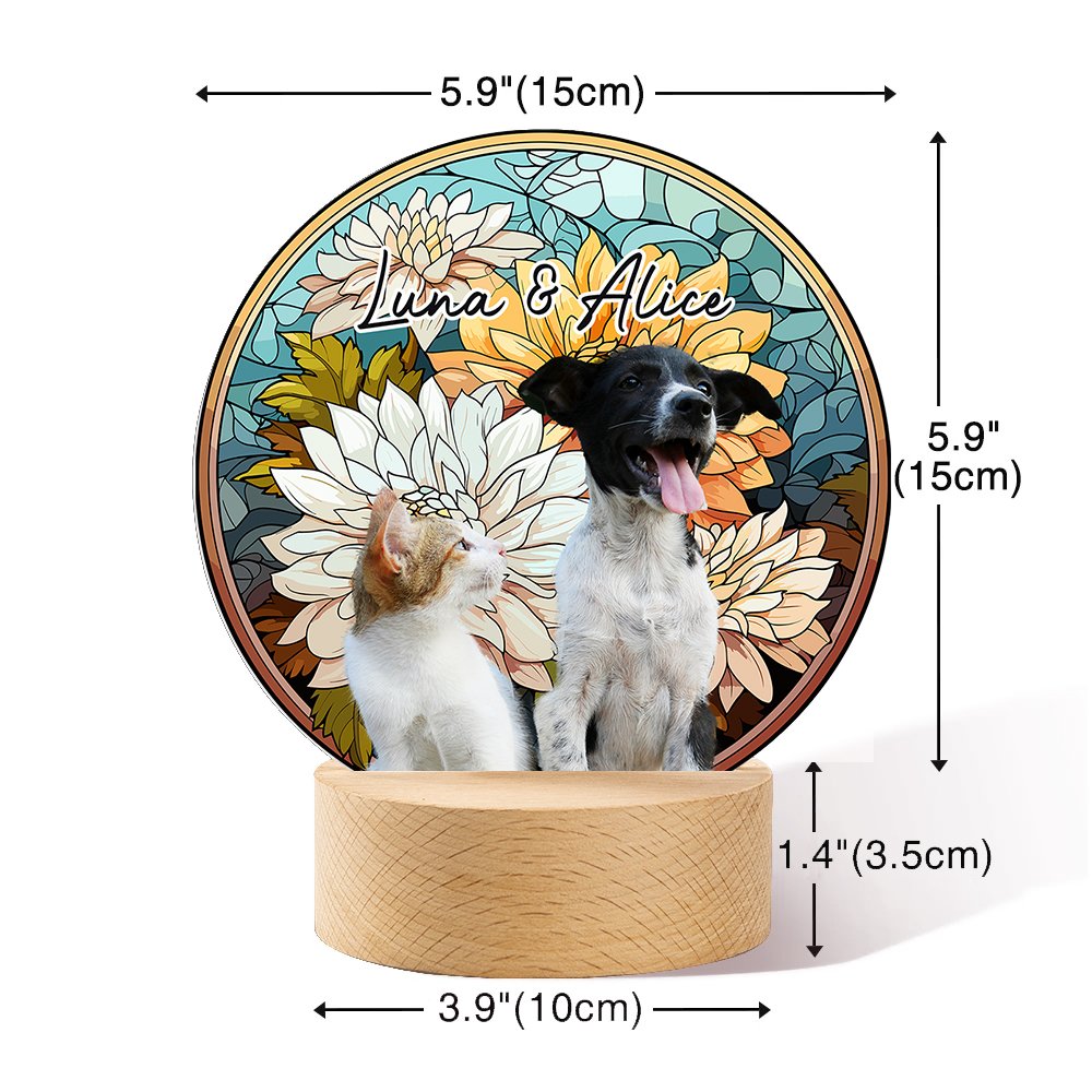 Questa splendida luce notturna è caratterizzata da un fiore di nascita in stile vetro colorato, che consente di personalizzarla con un nome e una foto cara del vostro animale domestico o della persona amata. È un modo bellissimo per onorare la loro memoria aggiungendo un tocco personale.