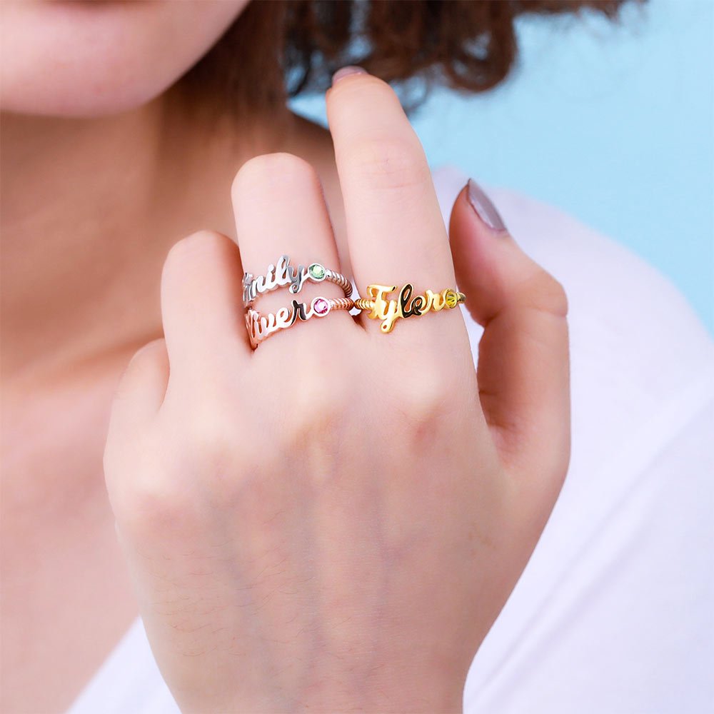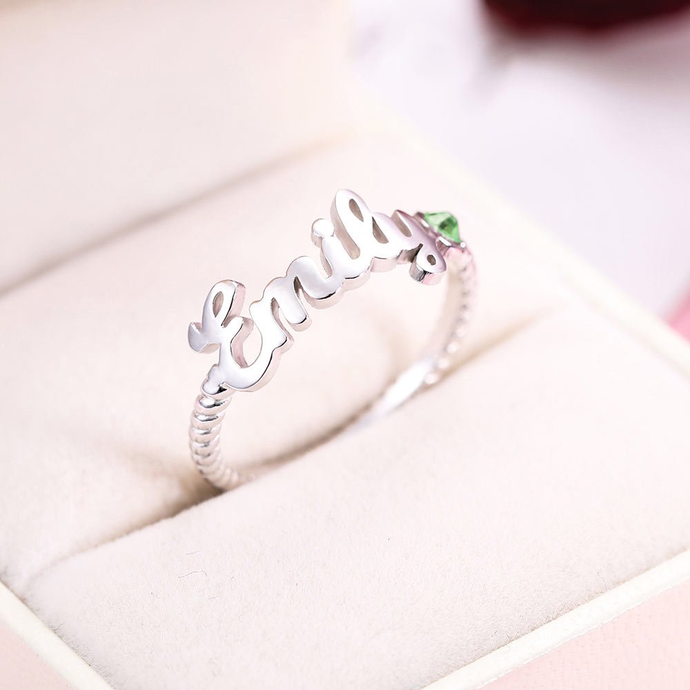 -Questo anello Callie è caratterizzato da un nome speciale e da pietre natali scintillanti incastonate sul lato destro del nome. Il taglio enfatizza lo scintillio delle pietre, creando un look vivace e senza tempo. Questo anello è un'ottima scelta per aggiungere un tocco di colore ai vostri outfit quotidiani. Adatto per regalare a voi stessi, al vostro amante, alla famiglia e agli amici, che sentiranno sicuramente il vostro amore.