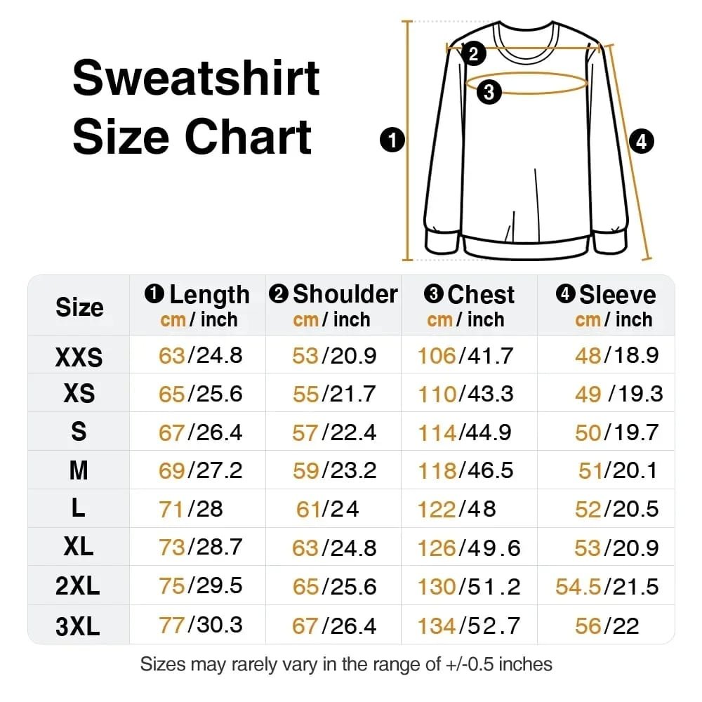 | Dimensione: | T-shirt - XXS, XS, S, M, L, XL, 2XL, 3XL, 4XL, 5XL Felpa - XXS, XS, S, M, L, XL, 2XL, 3XL Felpa con cappuccio - XXS, XS, S, M, L, XL, XXL, 3XL |