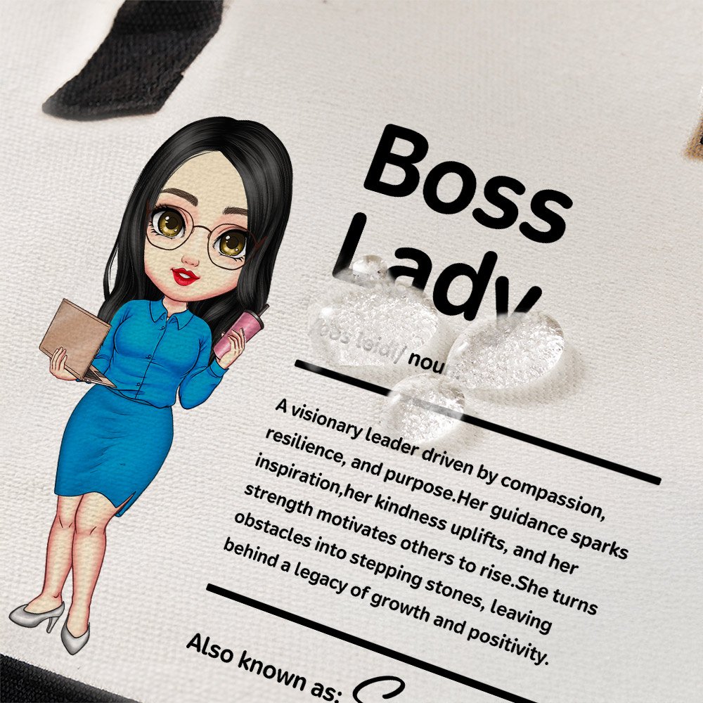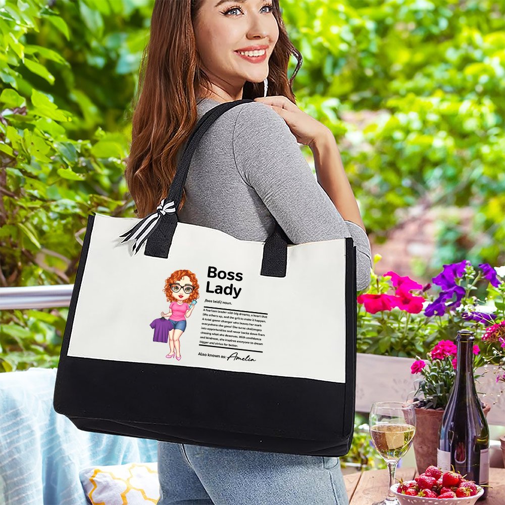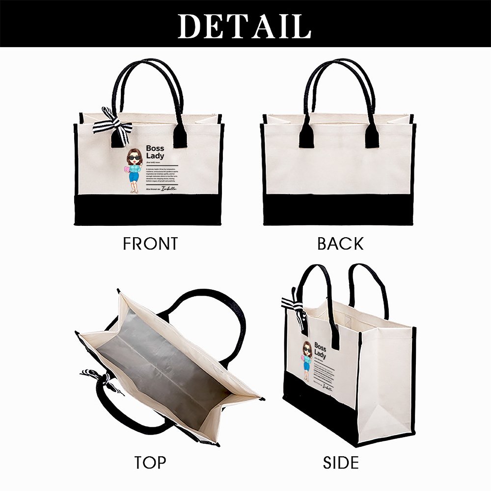 Questa tote bag presenta un design classico e adotta il bianco e il nero come colori principali, aggiungendo un fascino semplice e alla moda. Personalizzate il vostro esclusivo personaggio del boss dei cartoni animati, coronato dall'accattivante titolo "Boss Lady", per mostrare la vostra professionalità con personalità. Inoltre, è possibile personalizzare il proprio nome per rendere questa borsa ancora più unica.