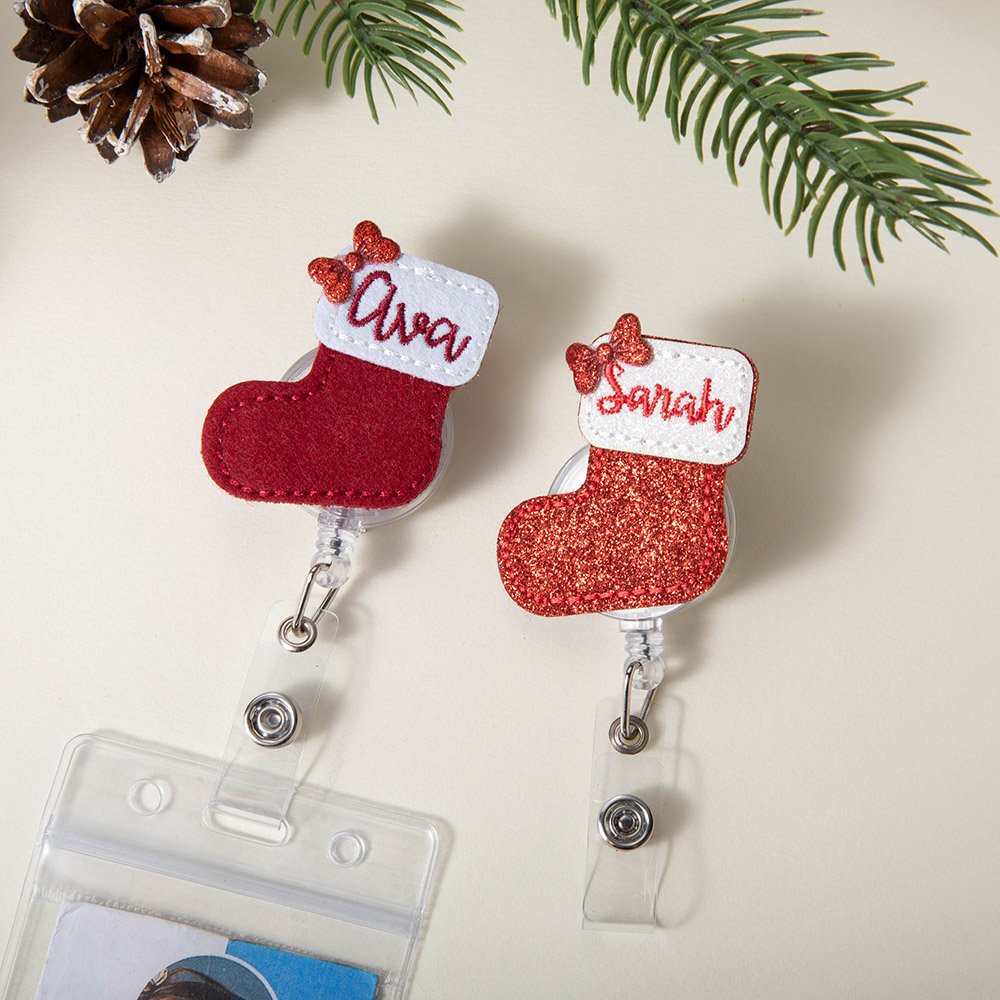Personalizzato Arco Natale Badge Reel con ricamo Nome Ufficio Accessori Regalo di Natale per infermiera insegnante collega