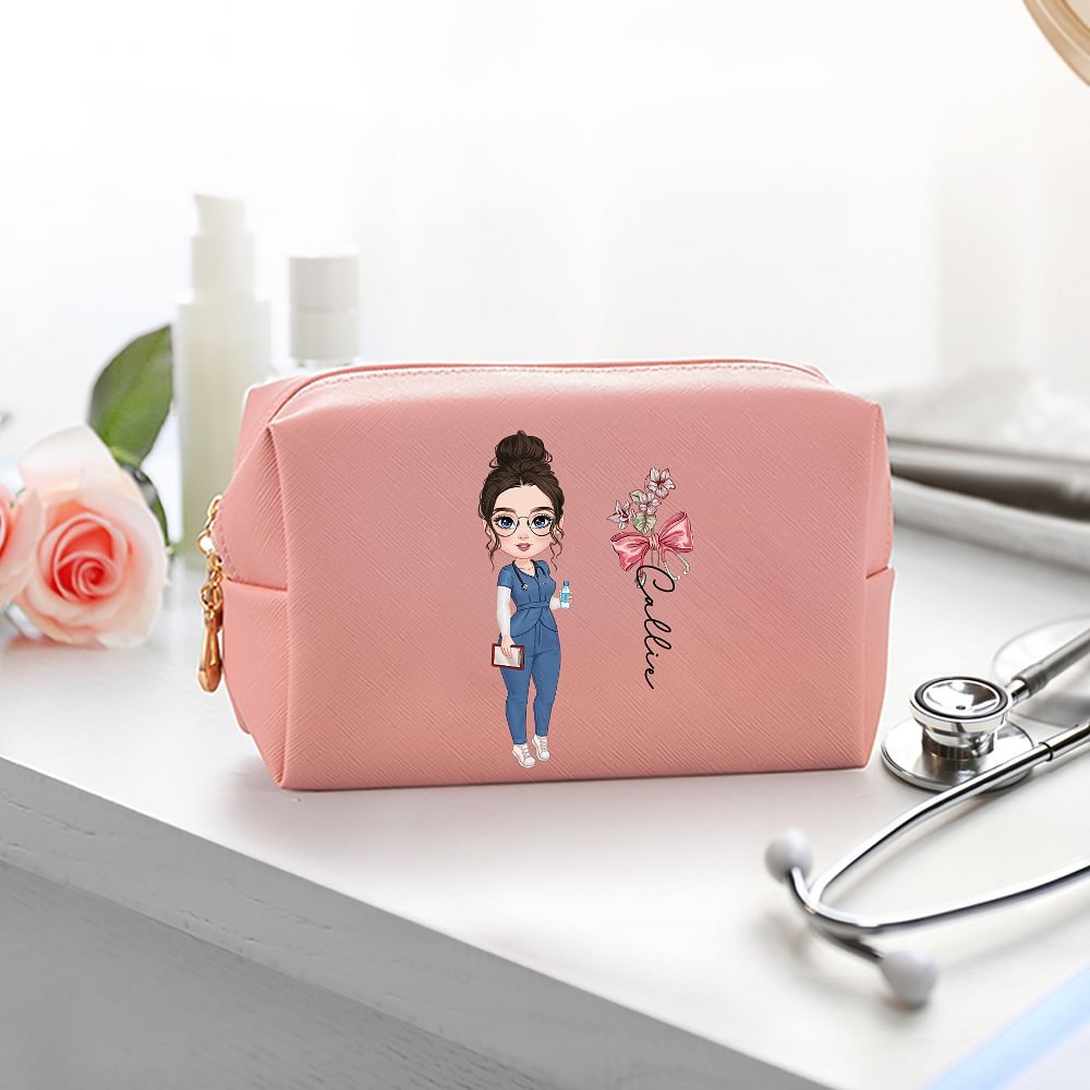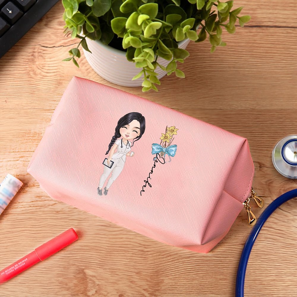 Questa elegante borsa per cosmetici è stata progettata appositamente per le donne che lavorano nel settore medico. Combina elementi come fiori di nascita, uno stetoscopio e un fiocco con un nome personalizzato, rendendola un accessorio unico ed elegante. È il modo perfetto per mostrare apprezzamento per le infermiere, i medici e il personale medico che lavorano duramente.