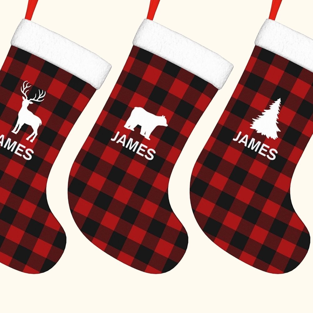 Personalizzato Buffalo Plaid Calza di Natale con nome Orso Alce Cervo Albero Antler Regalo di Natale per bambini Famiglia