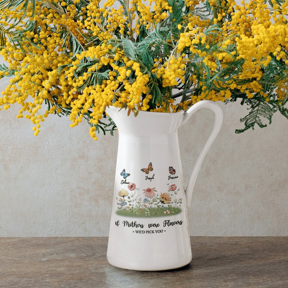 Il vaso in ceramica bianca presenta una scena bella ed elegante con uno sfondo di fiori colorati e delicate farfalle. È inoltre possibile personalizzarlo con 1-8 farfalle e i nomi corrispondenti di ciascun membro della famiglia per esprimere la propria gratitudine alla madre o alla nonna. Un regalo unico e sentito per la Festa della Mamma.