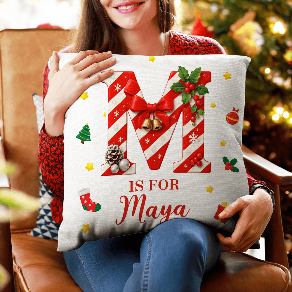 Personalizzato Candy Cane iniziale morbido cuscino di copertura con nome Home Decor regalo di Natale per gli amici Famiglia