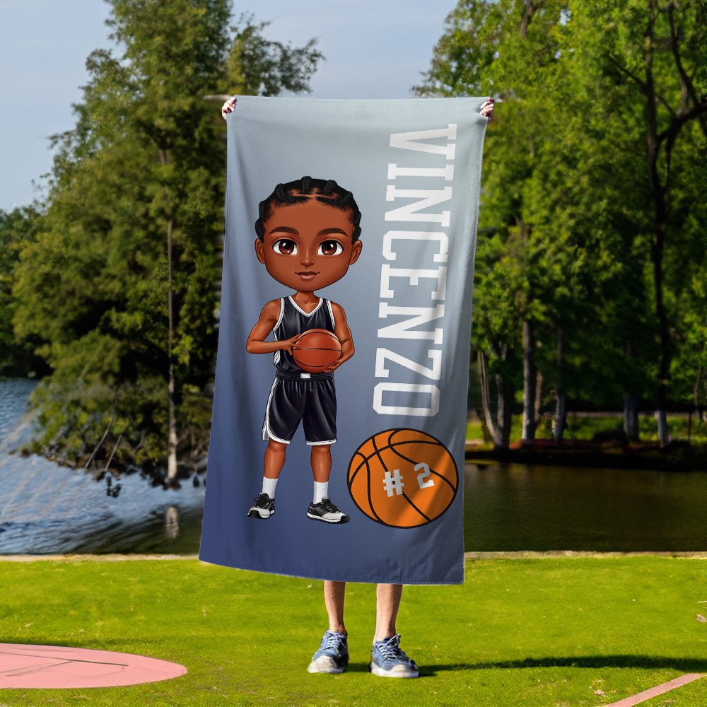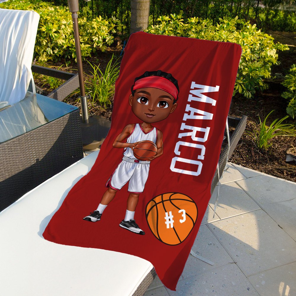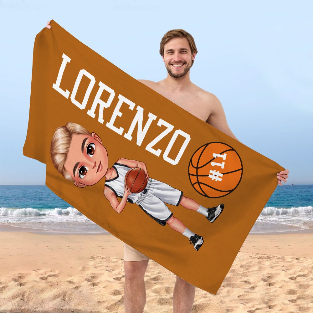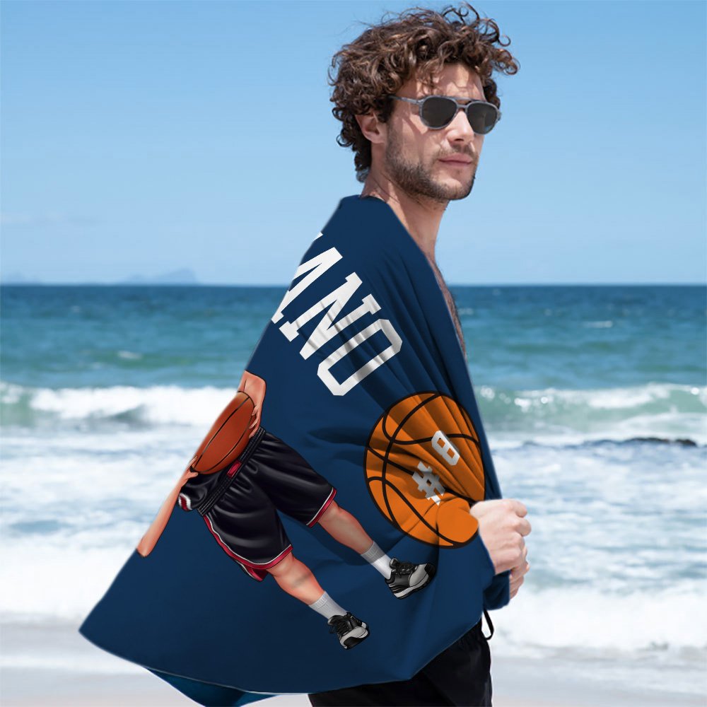 Questo asciugamano da spiaggia sfoggia un'illustrazione dinamica di un giocatore di basket in tenuta sportiva, che trasmette energia con il suo stile vivace mentre tiene un pallacanestro. Disponibile in 23 colori vibranti, puoi personalizzarlo con nome e numero di maglia per creare un pezzo davvero unico.