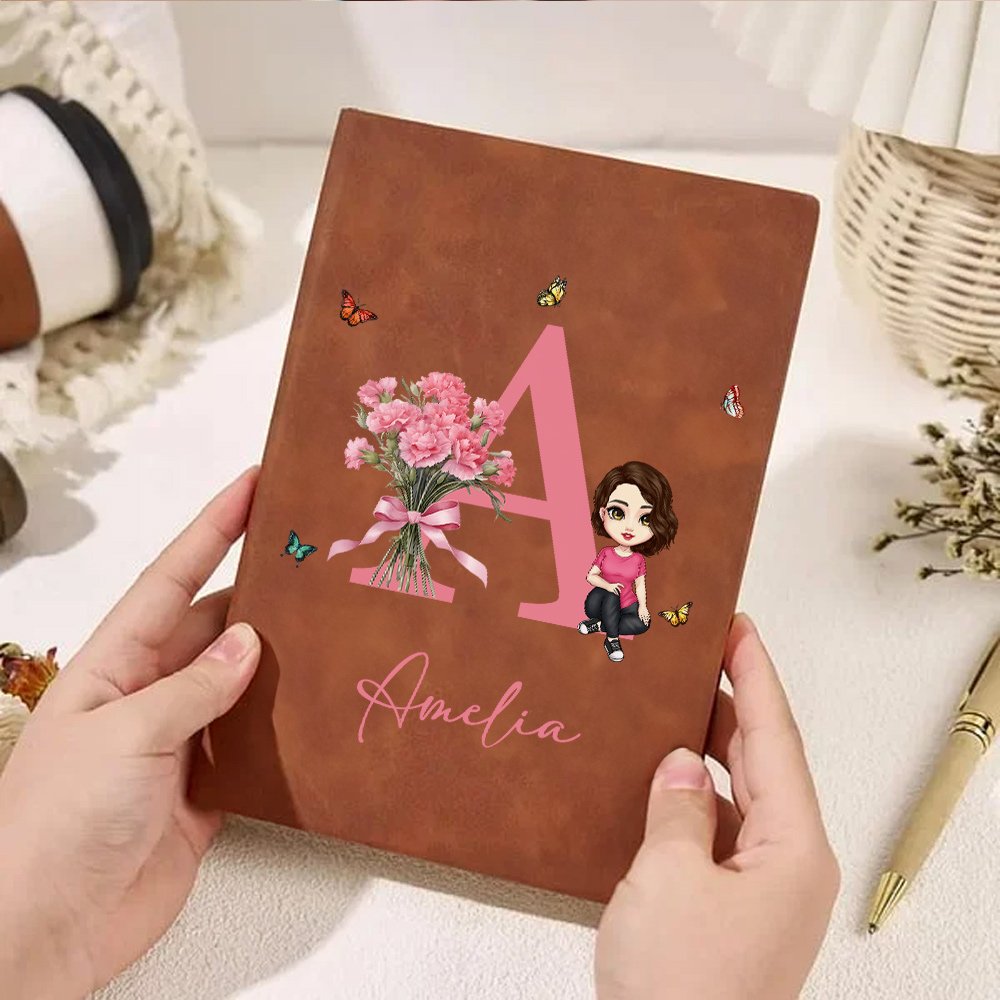 Taccuino A5/A6 in pelle PU personalizzato con personaggio fiore di nascita nome e iniziale kit scolastico regalo di compleanno per amici o famiglia