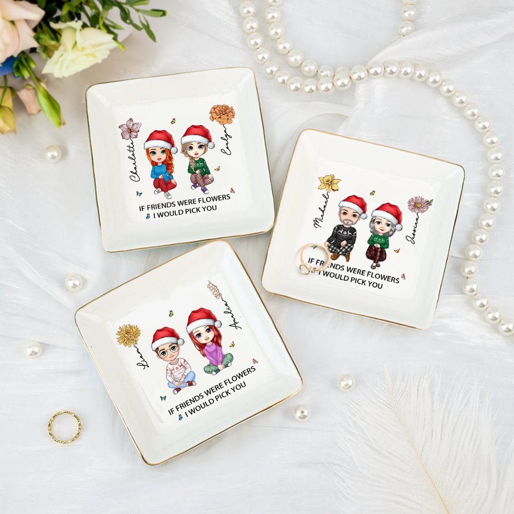 Celebrate la vostra amicizia con il piatto gioiello "If Friends Were Flowers, I'd Pick You". Questo incantevole piatto presenta un esclusivo disegno di un personaggio dei cartoni animati accanto a un fiore di nascita e al nome della vostra amica, rendendolo un regalo sentito e personalizzato per la vostra migliore amica.
