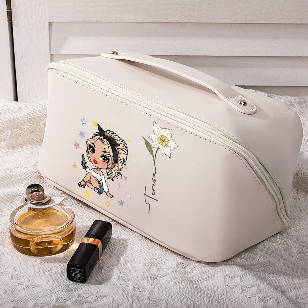 La borsa cosmetica è disegnata con bellissimi fiori di compleanno e ragazze dei cartoni animati, in modo giocoso e alla moda. Inoltre, è possibile personalizzarla con il proprio nome per creare uno stile unico che si distingua dalla massa. Il suo aspetto accattivante la rende il tocco finale di ogni viaggio.