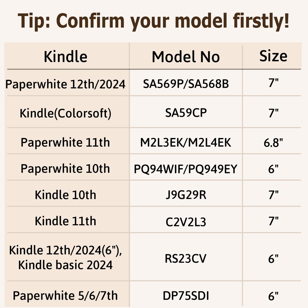 | Dimensione: | Paperwhite 12°/2024/(7"), Kindle(Colorsoft), Paperwhite 11°(6,8"), Paperwhite 10°(6"), Kindle 10°(6"), Kindle 11°(6"), Kindle 12°/2024(6"), Kindle Basic 2024, Paperwhite 5/6/7°(6") |
