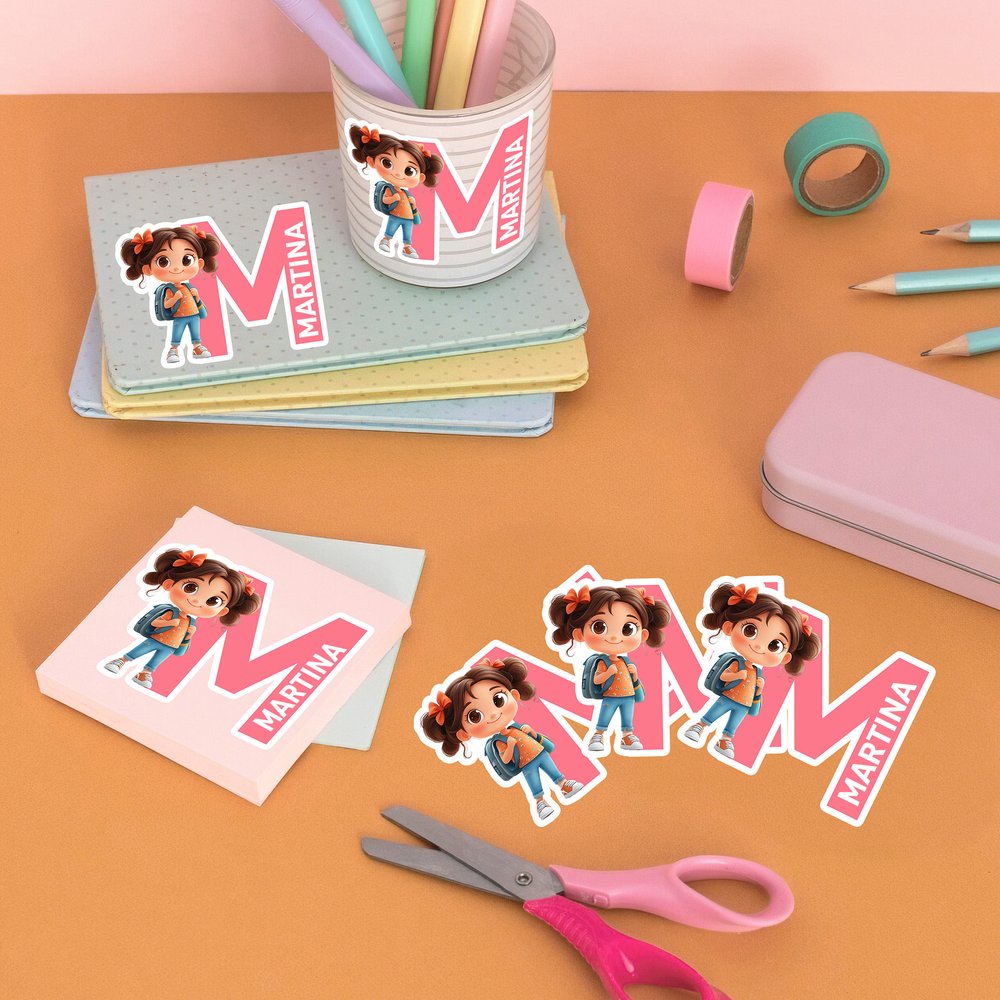Con simpatici personaggi che indossano lo zaino, questi adesivi offrono 15 design per ragazzi e 21 per ragazze. Ogni adesivo può essere personalizzato con un’iniziale accattivante che integra il nome del personaggio, creando un’etichetta unica e personale. Con 17 vivaci colori disponibili, puoi scegliere la combinazione che meglio rispecchia la tua personalità.