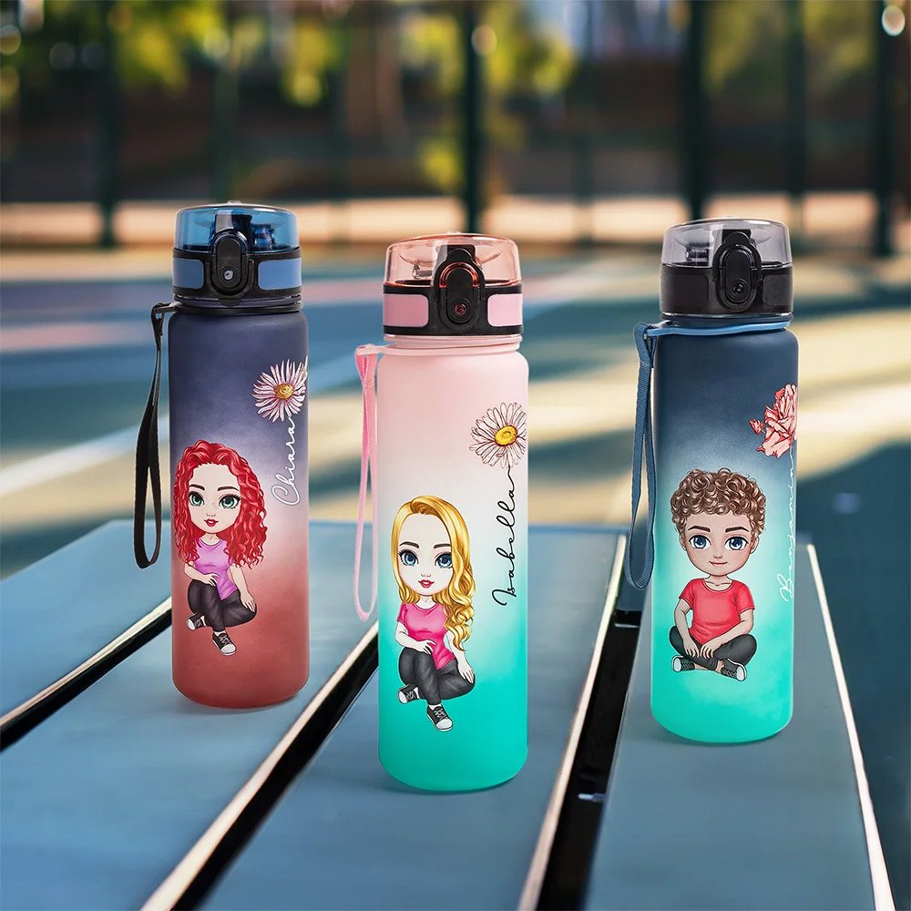 L'unicità della nostra borraccia risiede nel suo design a colori sfumati. I personaggi in stile cartone animato e i fiori di nascita possono essere personalizzati in base alle immagini preferite. Inoltre, è possibile stampare il nome del destinatario, per far percepire l'esclusività di questo regalo e rafforzare il legame emotivo tra i membri della famiglia.