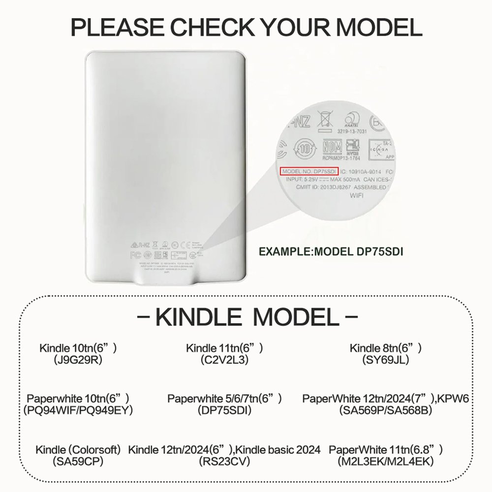 | Dimensione: | Kindle 10th(6")-J9G29R, Kindle 11th(6")-C2V2L3, Kindle 8th(6")-SY69JL, Paperwhite 11th(6.8")-M2L3EK/M2L4EK, Paperwhite 10th(6")-PQ94WIF/PQ949EY, Paperwhite 5/6/7th(6")-DP75SDI, Kindle(Colorsoft)-SA59CP, Paperwhite 12th/2024(7"),KPW6-SA569P/SA568B, Kindle 12th/2024(6"),Kindle Basic 2024-RS23CV |