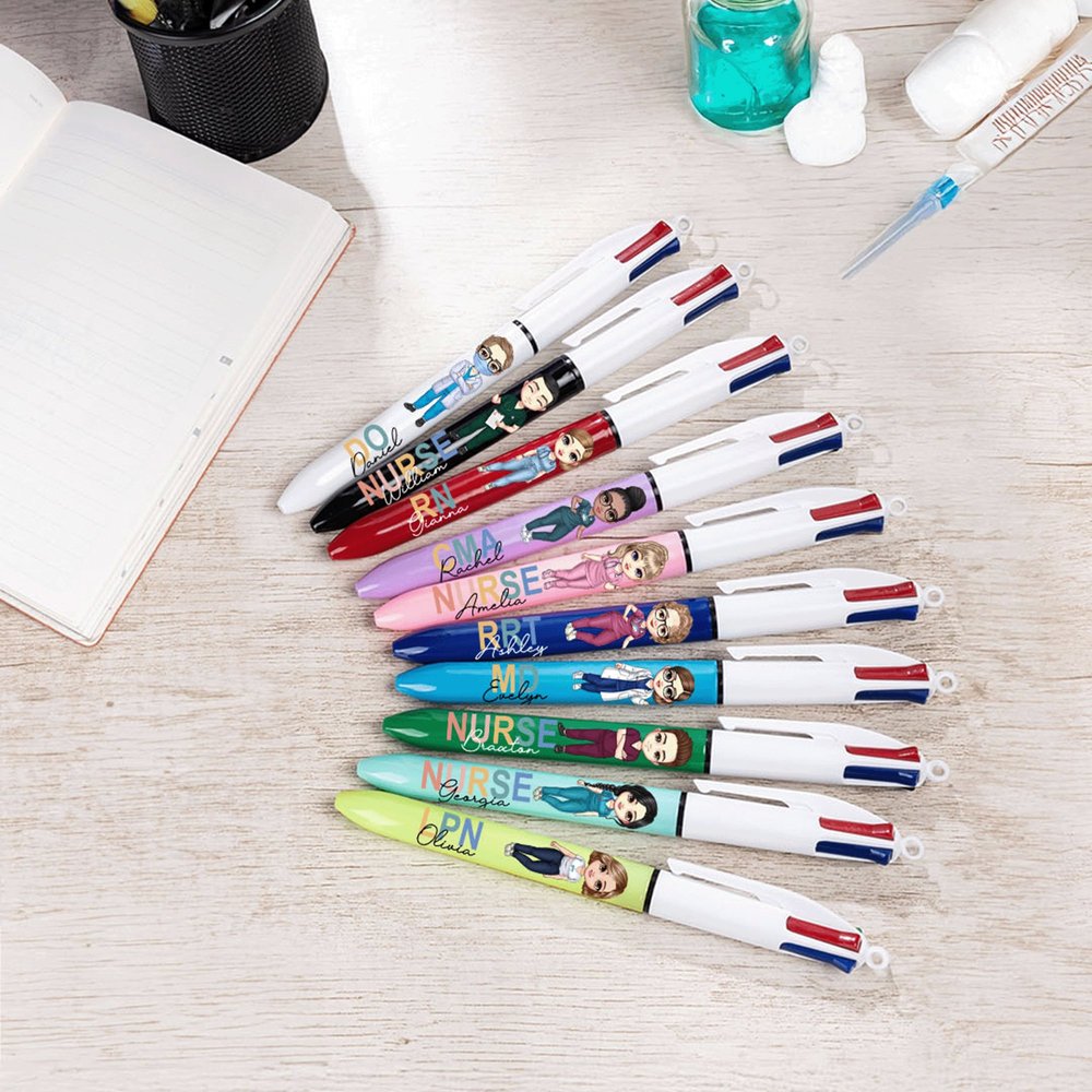 Penna personalizzata 4 in 1 con nome del medico e dell'infermiere, regalo di apprezzamento per il personale medico.