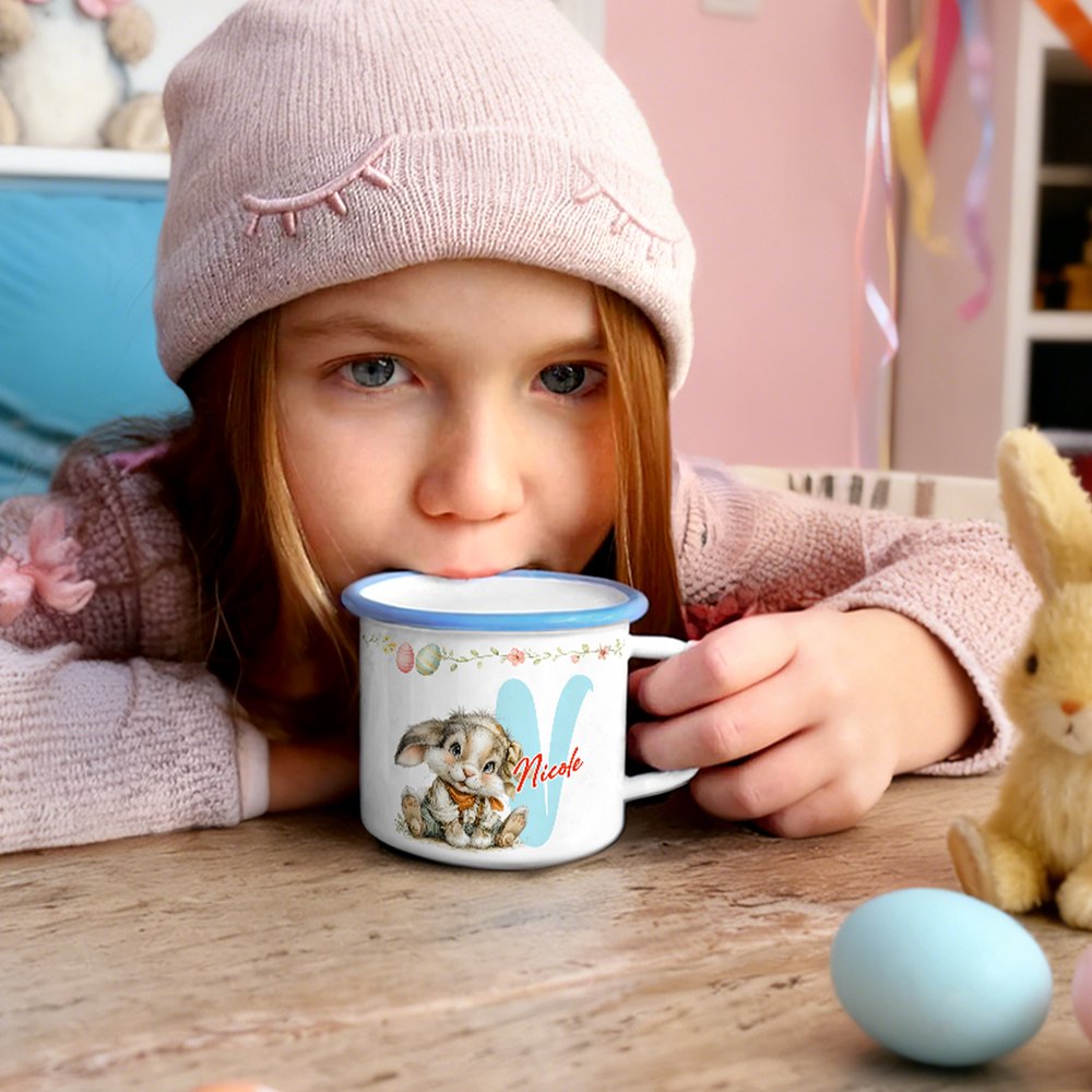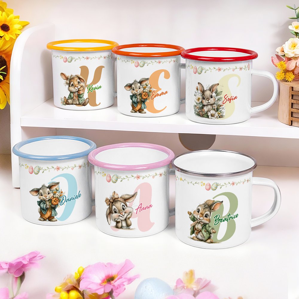 Il design, ispirato alla dolcezza del coniglietto pasquale, esplode in colori vivaci che accendono immediatamente l’allegria della festa, incontrando perfettamente il gusto e la fantasia dei più piccoli. Grazie alla personalizzazione del nome, ogni tazza smaltata diventa un pezzo unico: non un semplice oggetto, ma un prezioso scrigno di ricordi e affetto che rende la Pasqua un momento indimenticabile.
